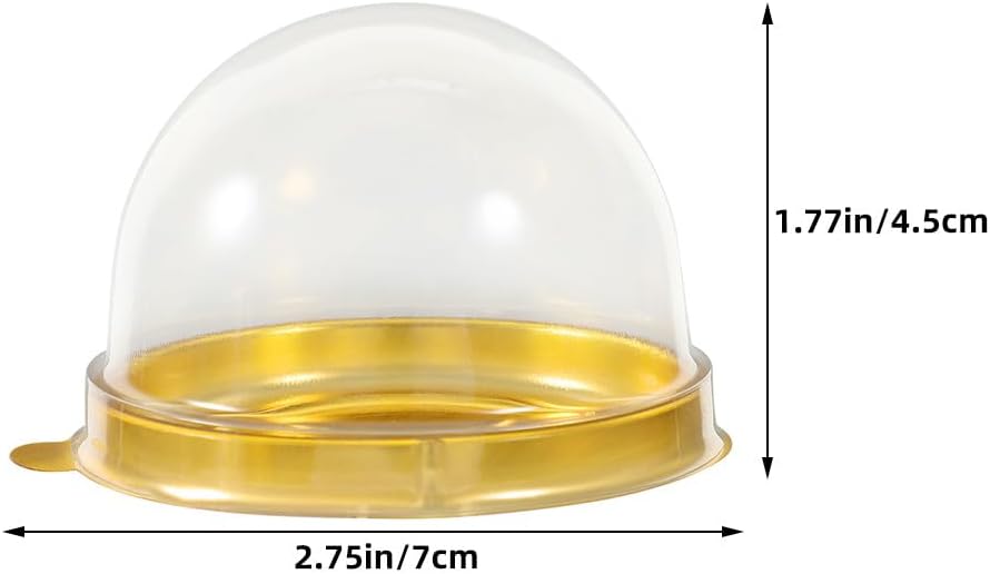 Description Perfect for meeting the needs of both home bakers and professionals, this packaging box provides a reliable and stylish way to store and present baked goods. Its design make sure freshness and protection, while the elegant appearance enhances the overall appeal of your creations, leaving a lasting impression. Features -Color:Multi -Material:Plastic -Size:7.00X7.00X4.50cm/2.75X2.75X1.77in -Golden egg yolk pastry box: the great gold design enhances the visual appeal of egg yolk pastries, making them ideal for upscale gifting -mini cupcake wrapping box: clear plastic material provides a full view of the contents, drawing attention to the quality and craftsmanship of the baked goods -Sturdy construction: the round structure prevents crushing, ensuring the pastries remain intact during transit -Freshness assurance: airtight sealing keeps egg yolk pastries fresh and flavorful, preserving their original taste and texture -Practical design: easy-to-use dome packaging allows for convenient access, perfect for sharing in social or professional settings