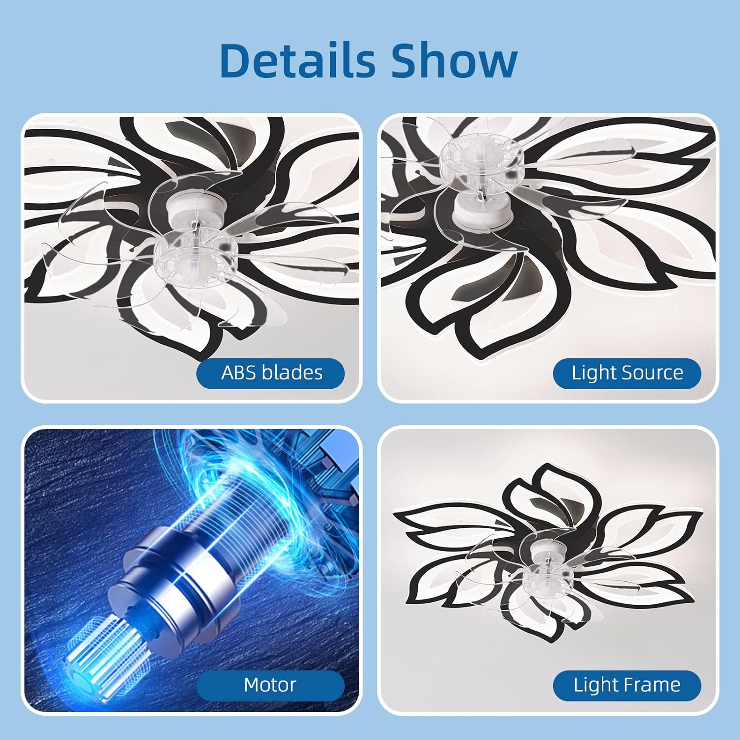 Modern Nordic:The Quiet fan lamp transparent 7 blades, 6 gear powerful wind speed. New stainless steel material with Black appearance can add a strong sense of design to your room while illuminating and blowing. Ceiling fan with remote for APP:Low profile ceiling fan has a reverse function , 6 wind speeds,2h timing,and all the functions can be operated by the hand-held remote or APP.The fan or illumination can be turned on separately,you can gradually adjust the color temperature (3000-6000K) of the ceiling light.The energy saving stepless dimmable light source can save more than 80% of energy. Easy to Install:After reading the manual, it can be easily installed. Most of the functional parts are already assembled. You only need simple installation, which can be completed in about twenty minutes. Reversible Inverter silent copper core motor:25.5in Flush mount ceiling fan with DC reversible motor allows you to switch the air circulation mode from downward to upward in different seasons. Also this Bladeless ceiling fan has a silent fan blade, so you can use it while you sleep, and is suitable for indoor spaces such as bedrooms, living rooms and dining rooms etc.