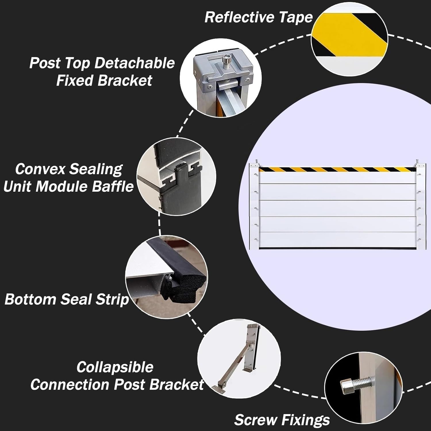 Description:--- During the rainy season or hurricanes, are you still worried about floodwaters eroding your garage, home, kitchen, roads?Why not bring our aluminum flood barriers home right away?It can effectively block the flood water and protect people and property. Features:→ Aluminum Alloy, sturdy and durable, strong load-bearing.→ Concave-convex splicing design provides a tight connection.→ Multiple sealing rubber strips for good waterproof performance.→ Easy and quick to assemble and disassemble, convenient and quick to deal with floods.→ Reflective warning strips are more humanized and can avoid collision when walking at night. Specifications:→ Material: Aluminum Alloy→ Post Size: 6x9cm (2.4x3.5in)→ Post Wall Thick: 8mm (0.3in)→ Baffle Wall Thick: 2mm (0.08in)→ Baffle Thick: 4cm (1.6in)→ Single Flood protection baffle Height: 20cm (7.9in)→ Length: Customizable ( The height of single aluminum alloy waterstop is 20cm, gradually stacked according to your requirements to determine the height; the length can be cut according to your needs! ) Package Includes:→ 1× Flood Prevention Barriers (The matching product in the product image is not included in the package). Tips:→ Feel free to contact us if you have any issues with your order.→