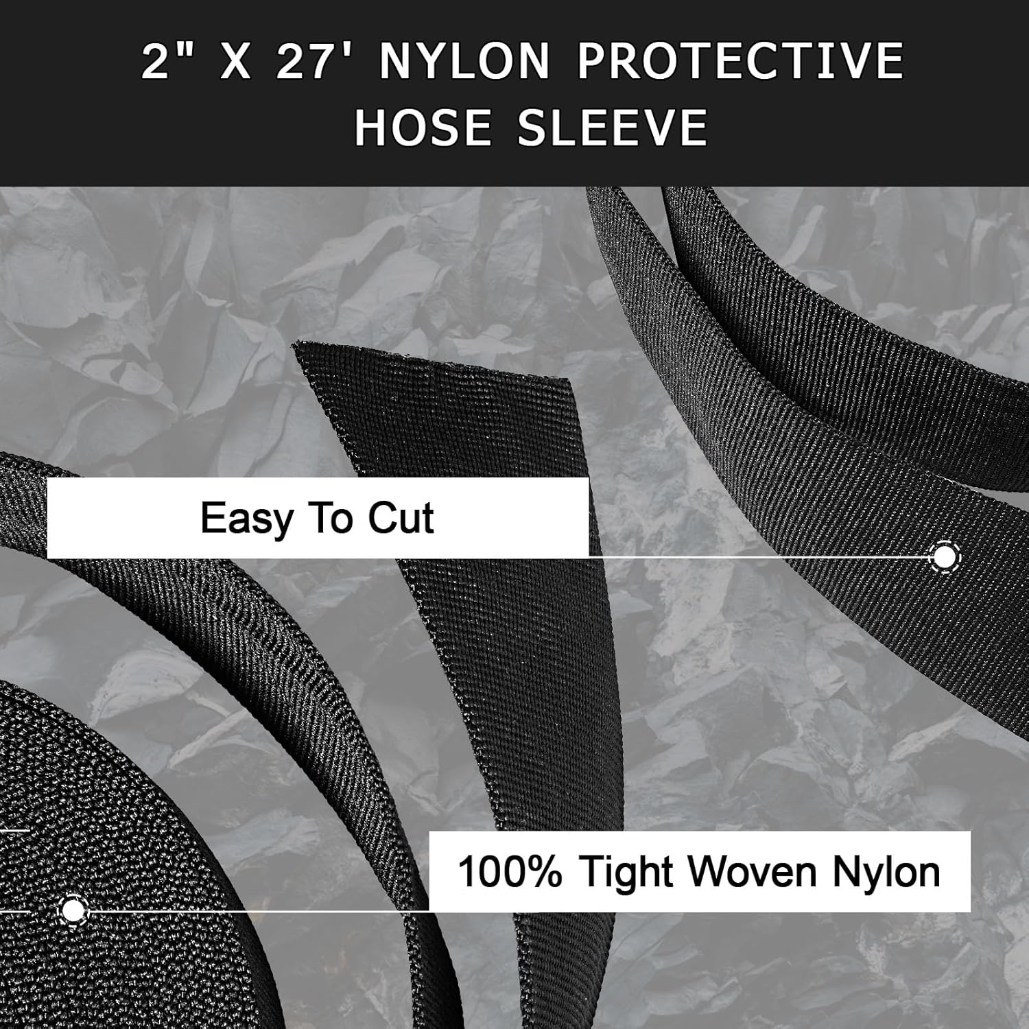 27 FT Nylon Protective Hose Sleeve 2" ID Cable Sleeve Torch Hydraulic Hose Protector Cutting Wire Hose Cover Management Wrap for Cord Tig Welding, Black Specifications: Length: 8.23m / 27ft Round diameter: 50.8 mm / 2 inch Flat width: 86.86mm / 3.42 inch Colour: black Material: nylon Features: ✔✔✔ Protect Hose: Hydraulic hose protector is tightly wovened, well made, soft and dustproof, perfectly protect hose from abrasion. ✔✔✔ Superior Material: Nylon protective hose sleeve is made of premium heavy duty tight woven nylon material, not only wear-resisting, but also flame retardant, strong and durable. ✔✔✔ Easy to Use: Hydraulic hose sleeve is very easy to cut and install, simple and convenient, sufficent length can make you cut to any length to fit your applications. ✔✔✔ Widely Used: Nylon hose sleeve is great for plasma torch hose, stick welding cables, hydraulic hoses, wiring harnesses, macerator tubing, and other uses. ✔✔✔ Nylon Protective Sleeve Size: Diameter: 2", length: 27 feet, flat width: 3.42", please carefully check the size before you order it. Reliable Service: As we are so strict with our quality, we have confidence. So we would refund 2 times price if you receive defective product. What's in the package: 2" Nylon Protective Hose Sleeve - 27ft