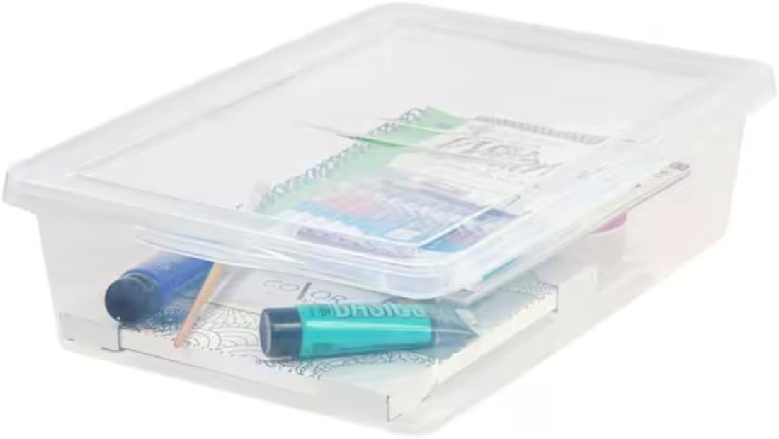 This versatile storage box is designed to fit neatly under most beds, providing a convenient solution for organizing items such as boots, jeans, and various household belongings. The snap-tight lid ensures secure storage, while the ultra-clear body allows for easy visibility of the contents. Furthermore, these boxes are stackable, making it easy to maximize any storage space. The dimensions of the box are 24 inches in length, 16.25 inches in width, and 6 inches in height.