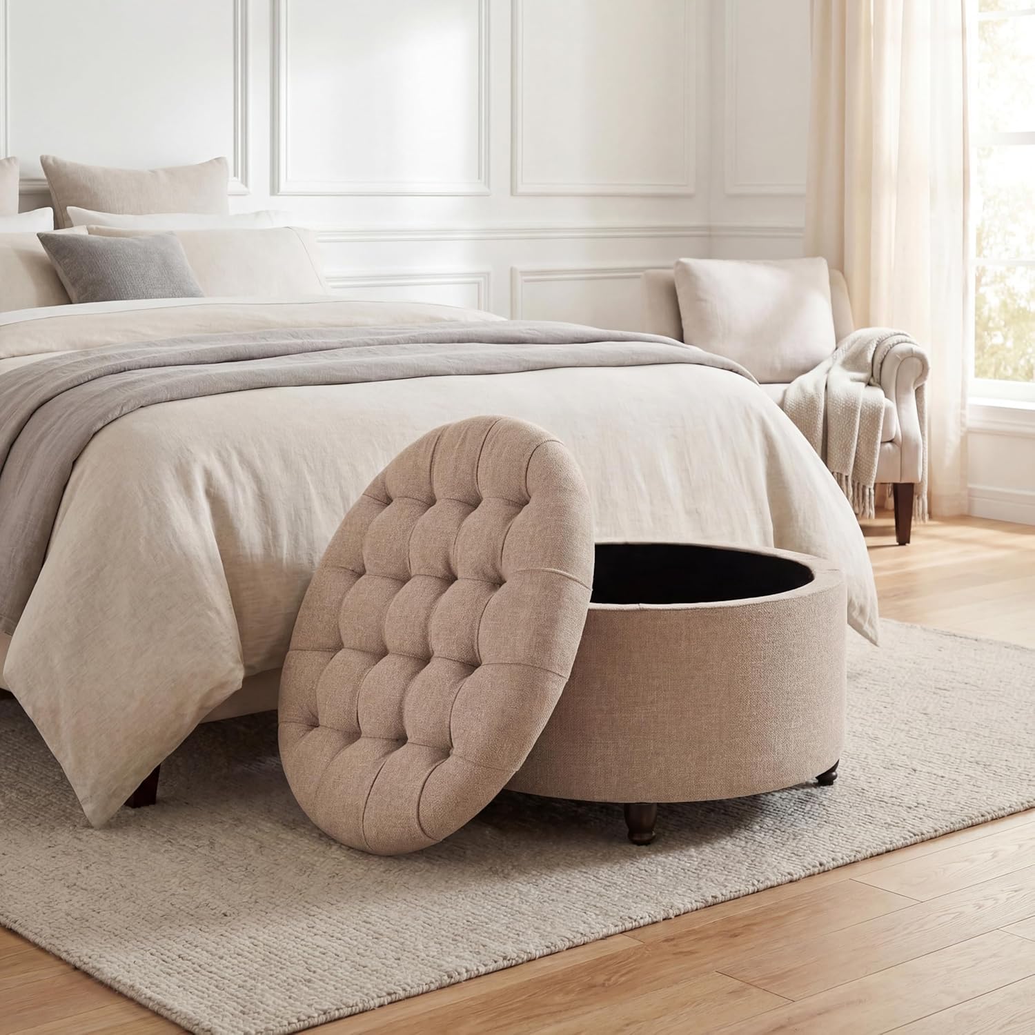 | Model Number | round storage ottoman brown |