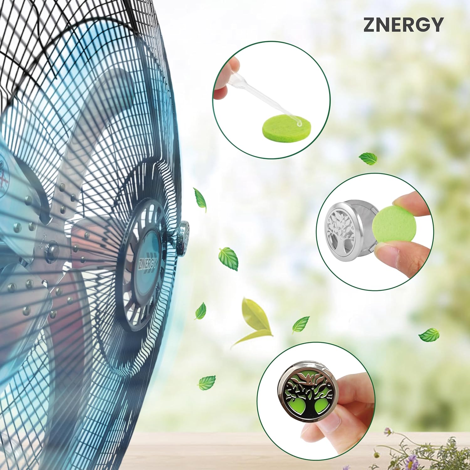 Powerful and Customizable Air movements Wider covered angles ensuring superior air circulation and even cooling throughout any space in your home or office. Adjustable Height Larger and heavier base for stability Sturdy Sleek modern industrial design 5 metal blades for greater air flow Oscillating wider angles Comes with floor brackets and pedestal stands to allow you easily swap for different air movement needs Comes with aroma oil diffusers. Simply add your own favorite scented essential oil Essential oil is not included