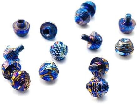 2pc Titanium Damascus Thumb Stud Push Screws for Demko AD20.5 knives. Suitable for blade holes of 3.5mm and blade thickness range 3.2-3.8mm. Made with CNC lathe and titanium damascus material. Package includes 2 sets of thumb stud push screws.
