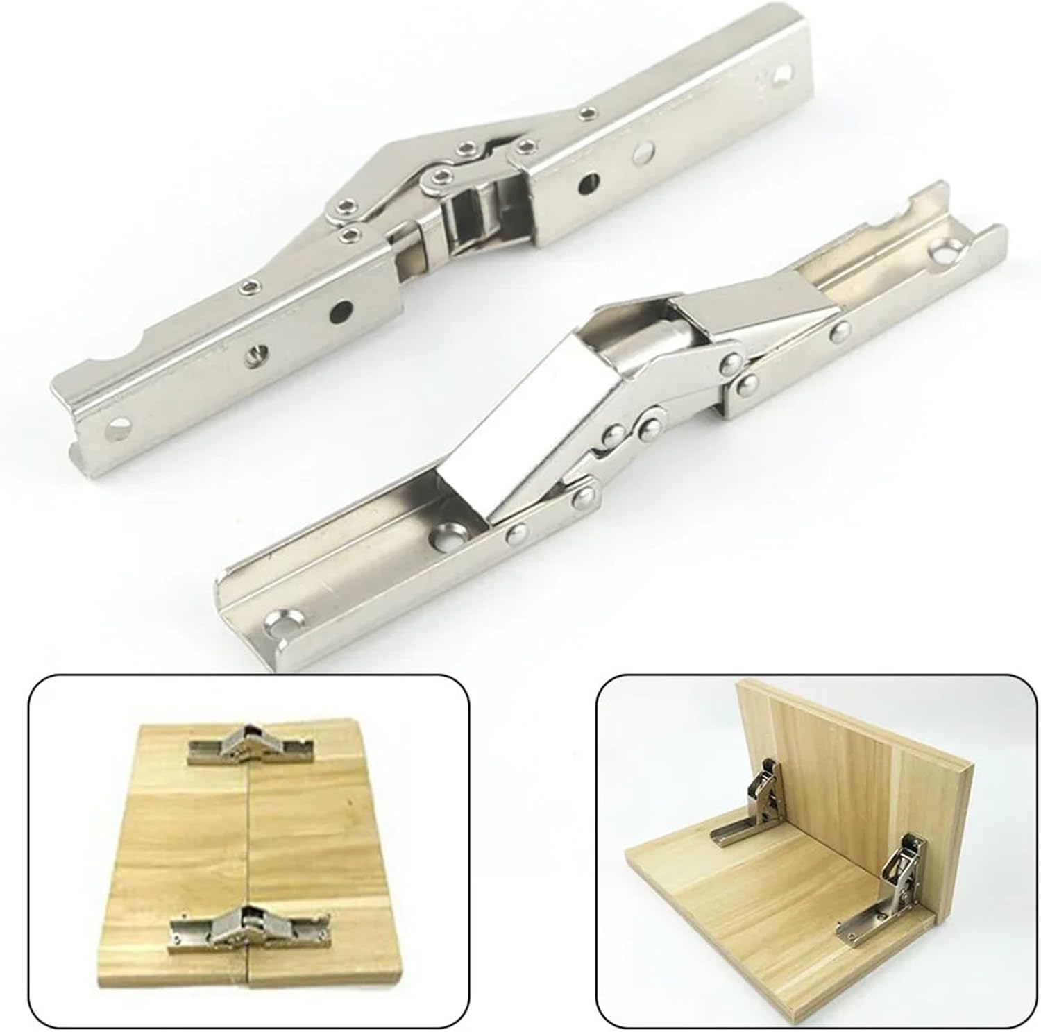 HingesFeatures:* Advantages of this hinge: no need to open holes, easy to install.* The product is made of cold-rolled steel plate, which is double-layer electroplated and has stronger rust resistance.* It can be folded 90° and 180°, and uses a special mechanism to slowly pull the door for smooth movement and a quiet home environment.* Ideal for folding connections of kitchen cabinet doors, wardrobes, TV cabinets, bookcases, wine cabinets, etc.Specification:* Material: cold rolled steel* Color: Silver* Maximum load: 6kg/2pcs* Total length: 165mm* Size: 68*8*21mm* Quantity: 2pcsPackage content:2 x folding hingesNote:1. The real color of the item may be slightly different from the pictures shown on website caused by many factors such as brightness of your monitor and light brightness.2. Please allow slight manual measurement deviation for the data.