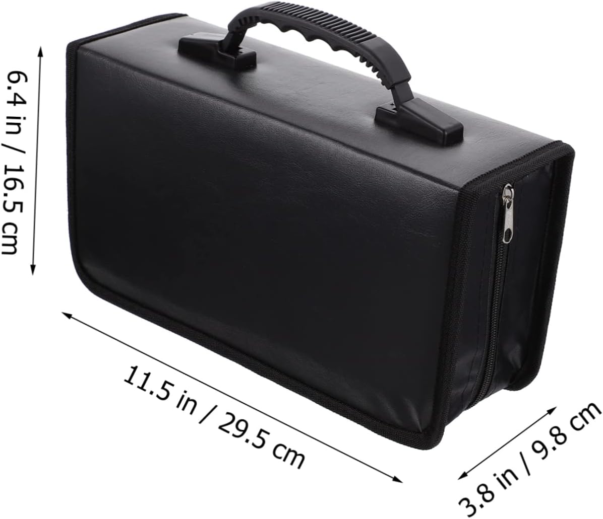 Package Include 2 x CD discs storage bags Characteristics - Material: PU CDs Storage Bag. - Capacity: 128pcs CDs DVDs Storage Pouch. - Size: About 29.50X16.50X9.80cm/11.59X6.48X3.85inch CD Holder Pouch. - Color: Black CD Disc Storage Holder. - inner pages won't scratch your CDs, and is wear-resistant, as well as can prevent shocks Disc Storage Case. - Saves your storage space, can be numbered, holds CDs and liner notes in both sides easily CD Zipper Case. - Sleek design easily fits into . Zipper closure is easy to insert and remove DVD Organizer. - Large capacity design can help you store and protect multiple CD discs Disc Storage Bag. - Protects disks , damp, scratches and corruption. and portable. Great someone special DVDs Storage Wallet.Goods InformationCD Holder Case If you want to buy a CDs storage bag, then you should not miss our product, this is a movie disc storage bag made of high- materials, which can serve US for a long time.DVD Organizer The practical disc storage bag can be used both in the car and at home.CD Disc Storage Holder The storage bag with large capacity design is convenient and practical