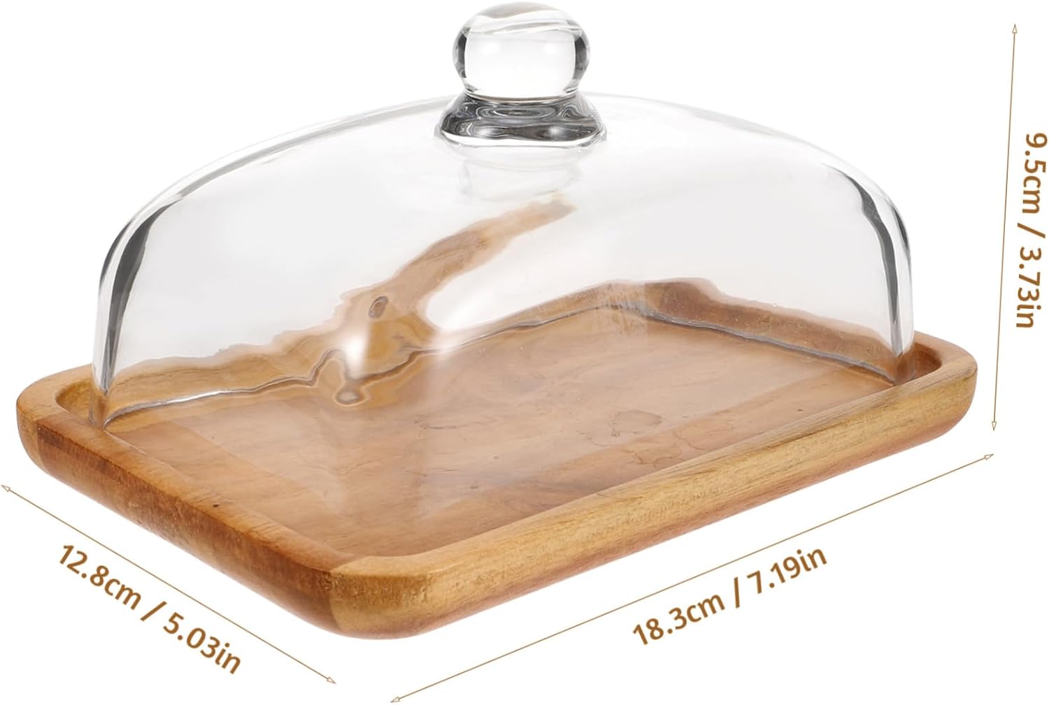 Package Include 2 x wood base 2 x glass cover Features -Material:Wood and glass reusable dish holder - Size: 18.30X12.80X9.50cm/7.19X5.03X3.73in butter tray -You will find your kitchen neat and orderly after using this butter box, improving your life greatly butter box. -Simple and portable design, made with good workmanship details, and firm, not easy to damage reusable butter dish. -The butter made of wood and glass materials, which makes the box more and safer butter container with lid. - ColorTransparent butter keeper -Simple and modern design fits home countertop styles and different occasions, such as Christmas, Thanksgiving Day or other memorable days reusable serving tray -The lid keeps butter fresh in the fridge and it will prevent the taste mixed, excellent for storing butter and cheese butter container.Goods Informationbutter dish for home This Butter Storage Box with lid, which is manufactured with material, reusable and portable, classic and delicate, stylish and creative.butter dish with clear lid You can send it for friends because it is necessary for home.cheese container Great for household