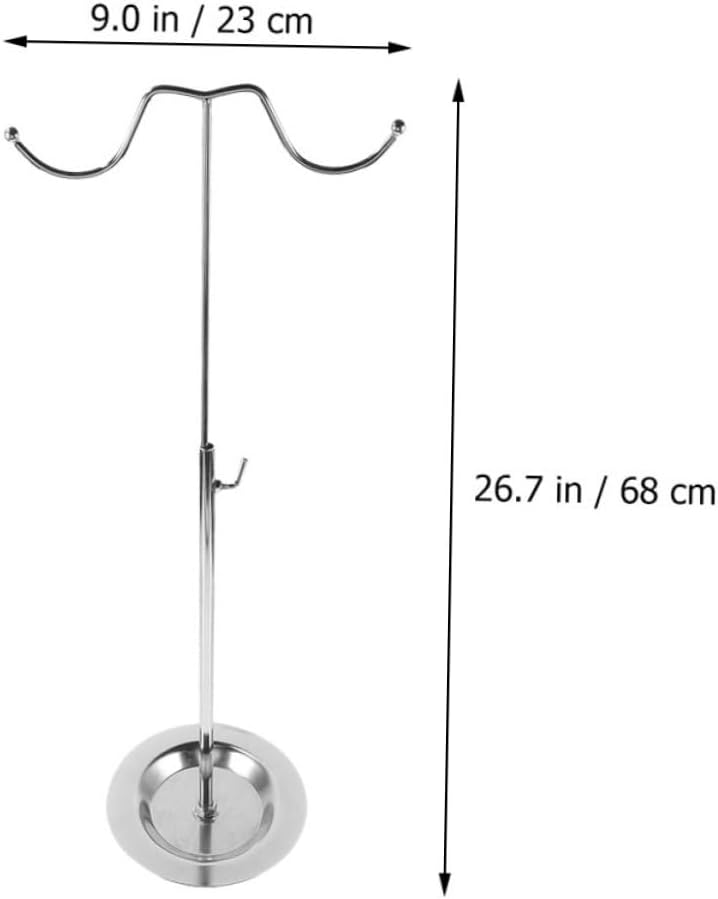 Package List 2 x handbag display stands Characteristics -Size:23.00X23.00X68.00cm/9.04X9.04X26.72in display hooks -Color:Silver hanging display stand -Material:Stainless steel purse display rack -Note: adjustable range: 38-68cm desktop handbag display stand - This bag display stand is design, multipurpose and useful, also for display hat desktop purse display stand. - The bag hanger stand has adjustable design and is suitable for storing your handbag, shoulder bag, and purse display stand single hook. - The useful purse hanger stand is simple to use, flexible and useful, convenient to use, easily meet your needs tote purse. - Smooth surface, comfortable hand feeling and will not scratch handbag, and useful, and excellent metal handbag display stand. - Made with metal material, this purse hanger stand with dual hook is and useful, suitable for home or shopping mall jewelry stand tower.Goods Informationdesktop handbag display stand This bag hanger stand is made of metal material, and for long-term use.bag display stand for desktop for home and mall use.purse hanger stand Useful design, simple and delicate appearance, convenient to use.handbag display stand for desktop You can put some items on it, such as towels, bag, hat, handbag, purse