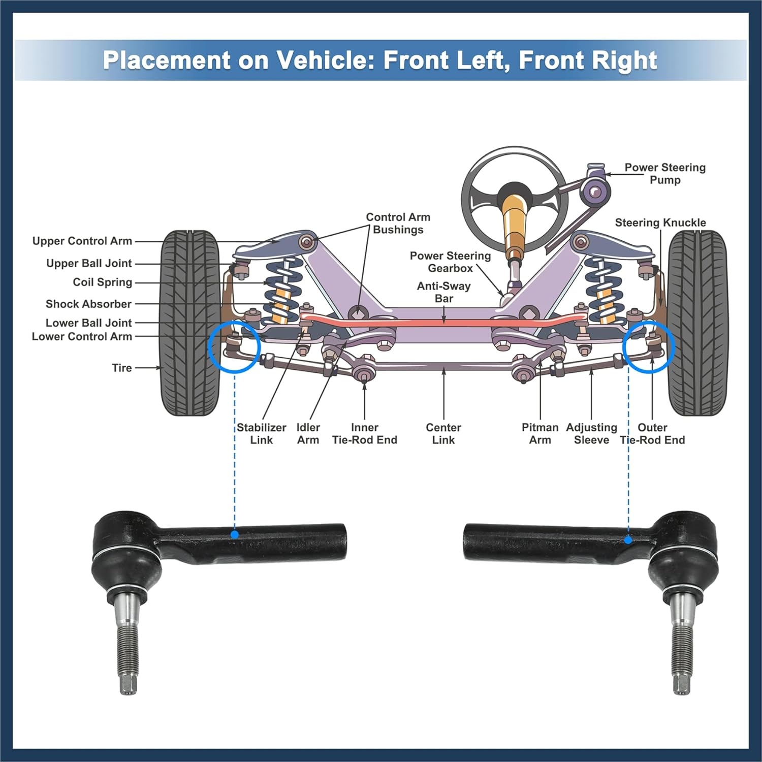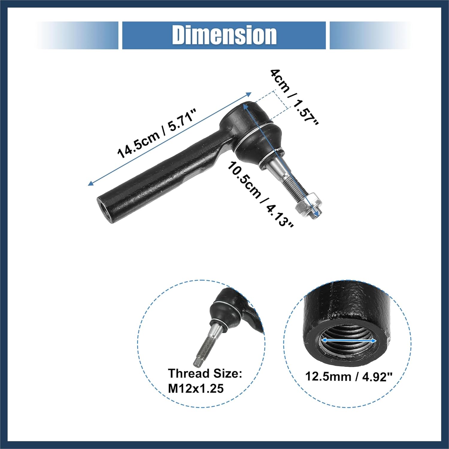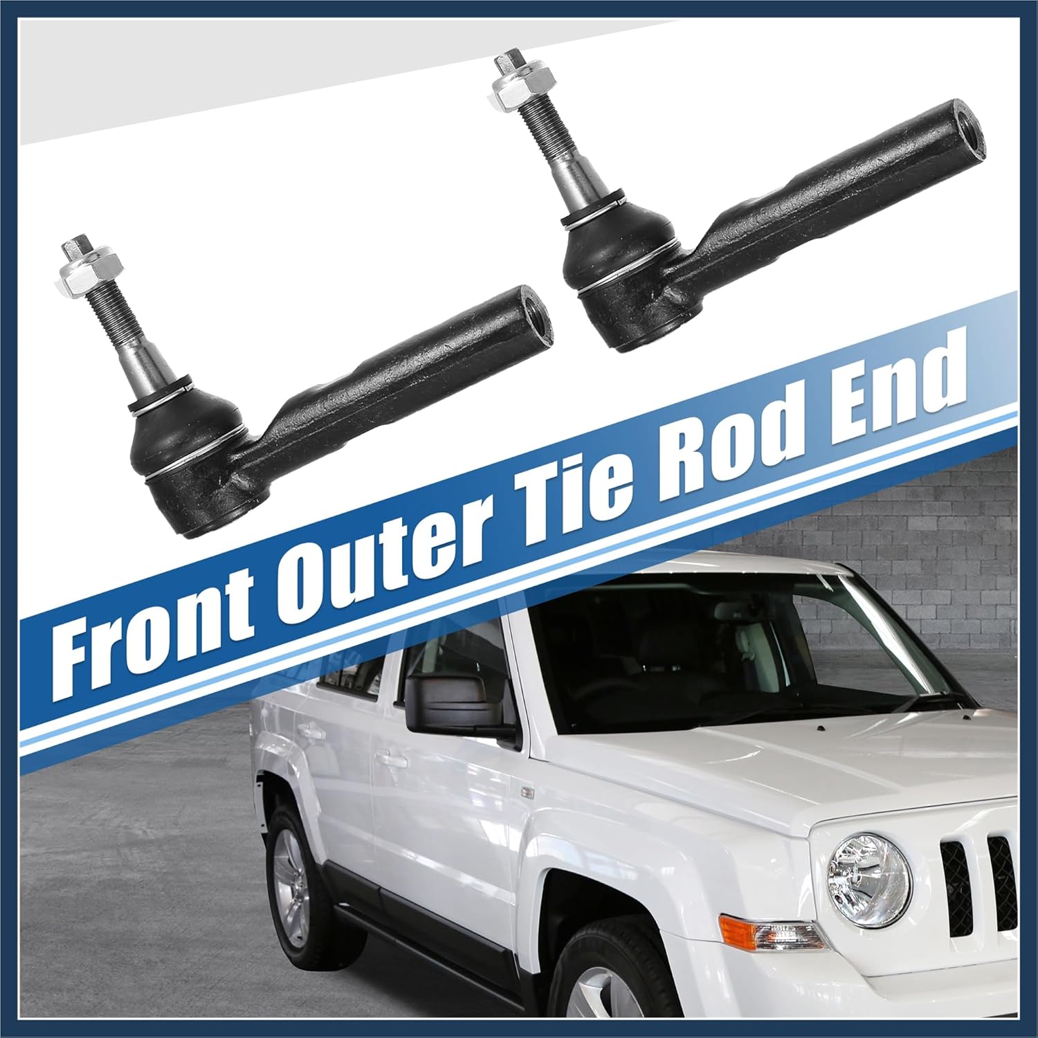 Features:Front outer tie rod ends are made of good material for long-lasting dependability and durability under bad conditions. This resisted abrasion and environmental corrosion.Restores like new steering and handling.Durable surface treatment for anti-rust.This is a non-OEM product, accessory only!Specifications:Material: MetalColor: BlackOE Number: ES800408Other Part Number: 5183761AA, 5183761AB, 5183761AC, 5183761ADPlacement On Vehicle: Front, Left, RightThread Size: M12x1.25Mounting Hole Diameter: 12.5mm / 4.92"Dimension: 14.5x10.5x4cm / 5.71"x4.13"x1.57"(L*W*H)Fitment: for Dodge Caliber 2007-2012for Dodge Journey 2009-2018for Chrysler Sebring 2007-2010for Jeep Patriot 2007-2017for Jeep Compass 2007-2017for Dodge Avenger 2008-2014for Chrysler 200 2011-2014Installation Steps: Loosen the pinch nut and remove the cotter pin.Remove the castle nut and the outer tie rod end.Remove the boot and the inner tie rod end.Replacing a new tie rod and installing it back according to the method of disassembly.Package Includes:2 x Front Outer Tie Rod End