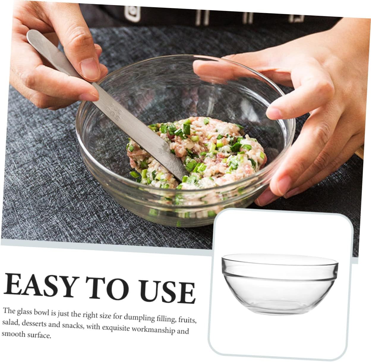 Package List 2 x Glass Bowls Characteristics - Size: 20.00X20.00X9.00cm/7.86X7.86X3.54in prep bowls - Color: Transparent kitchen bowl -Material:Glass cooking bowl -Selected premium glass material with detail, which is clear and bright glass mixing bowls. -Can be stacked, saving cabinet space, lightweight and portable, suitable for indoor or outdoor use kitchen bowls. -The stylish and creative appearance of the bowl allows you to enjoy the food food prep bowls. -The practical glass bowl can be used for minced meat, cereals, salads, fruits, rice and noodles and other things bowls for kitchen. -The surface is smooth and round, with good touch feeling, and will not damage your hands salad mixing bowl.Goods Descriptionfood prep bowls This item is a practical glass bowl, which is made of , not easy to deform or break.glass serving bowl Perfect for fruits, salad and other snack storage and sharing use, a great fruit bowl for home and restaurant.glass mixing bowls It provides convenience to the snack or fruit sharing