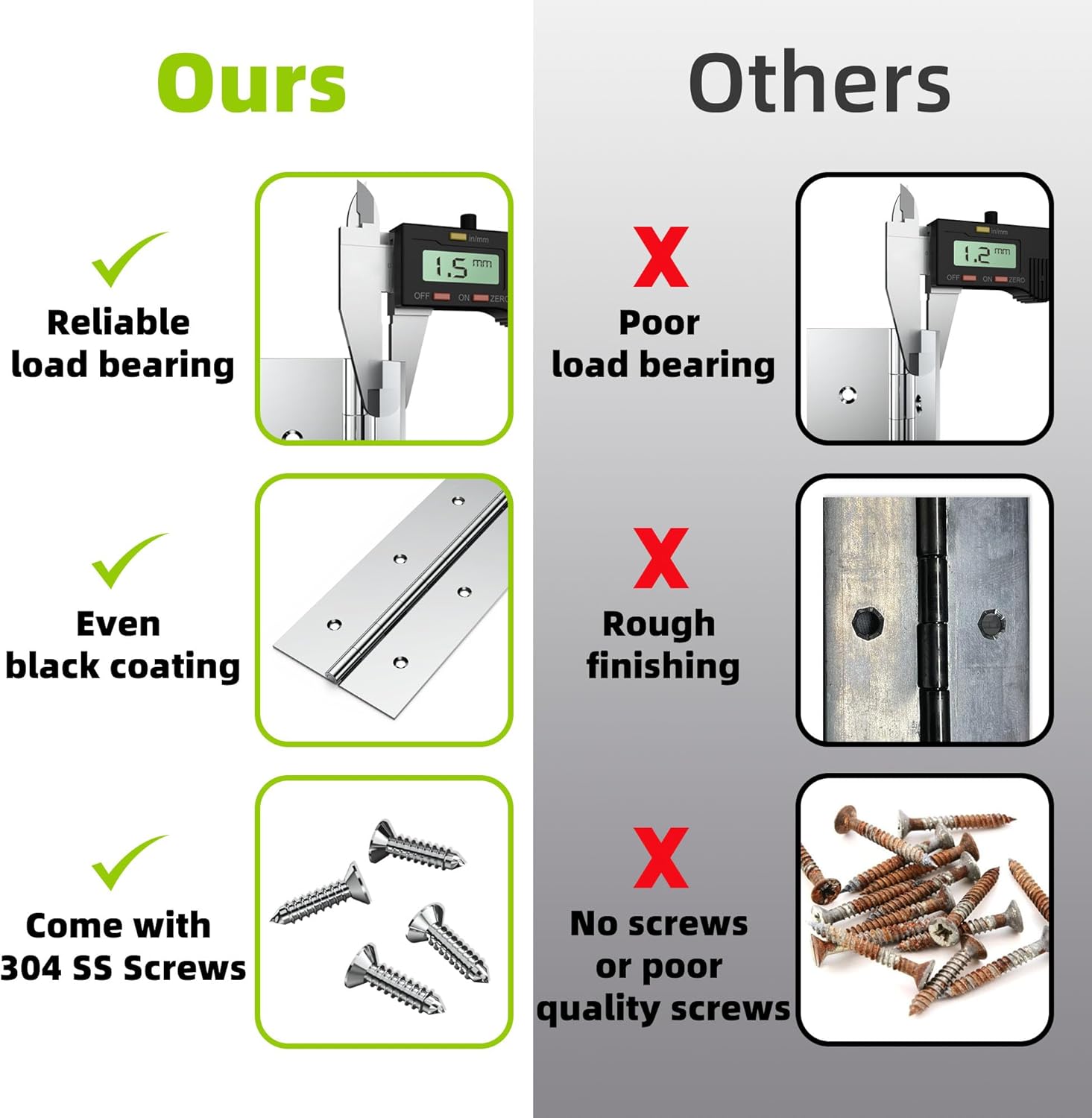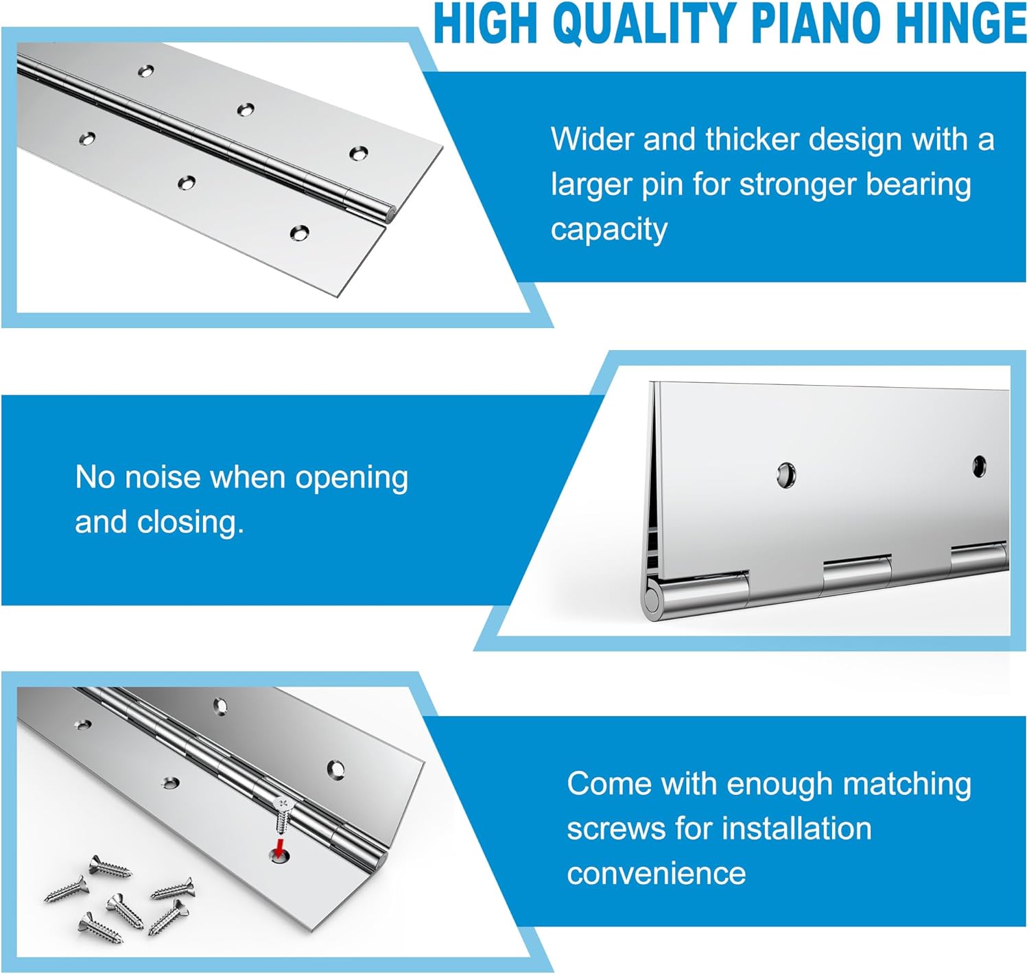 | Included Components | 2 pieces 2" X 36" Silver Piano Hinge, Sufficient number of screws |