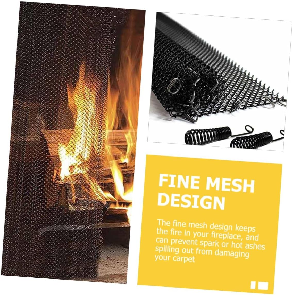 Package List 2 × fireplace mesh screen curtains 2 × handles Characteristics -Product Info:Fireplace Screen Tool -Material:Iron fireplace screen curtain -Color:Grey fire place screen mesh -Size:61.00X48.30X0.50cm/23.97X18.98X0.20in fireplace accessory - The black color makes in with the fireplace, won't even notice it, easy to use Fireplace Sparks Guard Curtains. - The fireplace mesh screen curtain is easy to fold and can be stored when not in use without taking up of space fireplace mesh curtain. - It can keep the fire in your fireplace, to prevent sparks from spilling out, to protect your carpet Mesh Fireplace Screens. - It will be a very practical housewarming gift for your friends who have a fireplace at home, and they will find it very practical to use mesh fireplace cover. - Made of iron, coated with rust-proof enamel, and after special curing treatment, the fireplace screen curtain is heat-resistant and decorative fireplace screen.Goods DescriptionMesh Screen Curtain for Fireplace Are you looking for a screen curtain for your home or outdoor fireplace? Do you want to have a heavy-duty fireplace mesh screen curtain that can help you ? If so, you should have at our product.Mesh Fireplace Screens The mesh screen curtain for a fireplace can both keep fire , but allow heat to pass through to keep warming, and it is easy to install