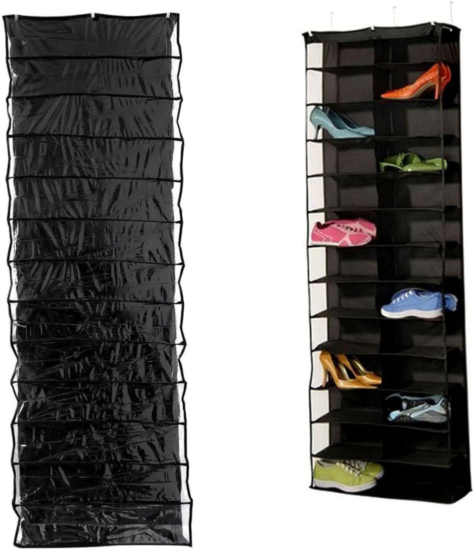 Package Include 2 x Hanger Shoes Organizer Features - Color: Black hanging storage. - Size: 55x16x5cm shoe storage hanging bag. - Material: PVC, nonwoven fabric, metal shoe rack hanging. -Product Info:Storage hanging bag - Includes a convenient hook to position the organizer over the door, closet or cabinet shoes organizer. - Great large capacity, 26 divided shelves offer enough storage for pairs of shoes, slippers, belts, scarves and other small items shoe holder for door. - Can keep your shoe collection neatly organized for a bedroom, closet, dorm room, , and other tight living spaces pockets hanging storage. - mounting, quick and easy to assemble, no extra required closet organizer hanging. - It will save large space for your home. Reasonably utilizes the unused storage space to the maximum degree shoes wardrobe organizer.Goods Descriptionshoe holder for door Each has 26 large pocket which can hold up to 26 pairs of shoes and some other small items.hanging closet shelves You can quickly and easily it over a closet or bedroom door for neat and orderly storage.wall hanging storage bag Idea for space saving in your home.shoes rack Still confused with the messy shoes on the floor or the limited space of the shoe shelf for storage? Well, let's bid farewell to these trouble with these over the door hanger shoes organizers