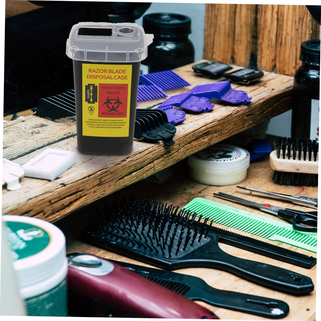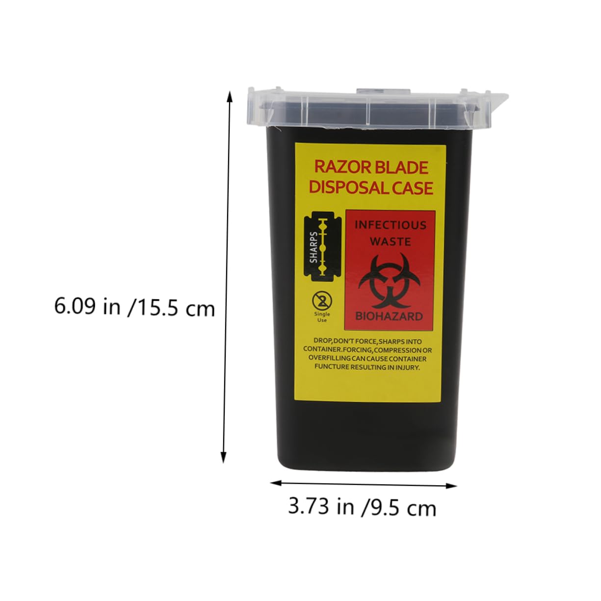 Package List 2 x Blades Dispensers Features - Material: Plastic Barber Shop Storage Container. - Color: disposal container. - Size: 15.50X9.50X9.50cm/6.09X3.73X3.73inch blades trash container. - Made of , it is durable, wear resistant and practical barber case. - The sharps container has a unique locking snap-top lid which seals the container container for Used . - Universal design suitable for all types of double-edged and haircut blades safety razor disposal container. - The blades dispenser is space-saving and light. It is simple in design, but very practical to use Blades Recycling Container. - Suitable for disposing sharps including those contaminated with medicinal products and their Razor Blade Storagement.Goods Informationshaving blades cases Safe locking with premium lid, which can be thrown once full, without worrying a being able to open it.cutter razor case Designed for safe, convenient disposal of used blade, pen needles and sharps.razor bank disposal Made of premium plastic material, our container is sturdy and lightweight