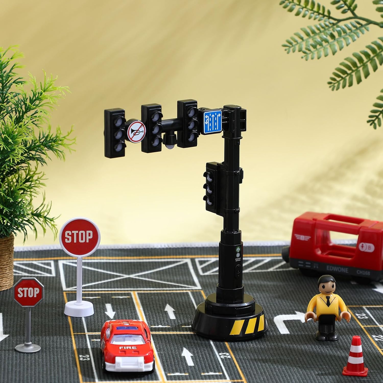 Why Choose Our Interactive Signal Models?Unlike static miniature props, these lamps feature synchronized sound effects and automatic light transitions (red, yellow, and green), perfectly mimicking real pedestrian crossings. The compact size is proportioned ideally for sandbox setups and vehicle play mats. Furthermore, the thoughtfully designed battery compartment requires a screwdriver for access, preventing little hands from reaching internal electronic components during active sessions.Who Is This For?Parents & Educators: Excellent visual aids for early education, preschool lessons, and home learning.Toddlers & Children: Engaging props that boost social skills through taking turns as drivers or pedestrians in role-play scenarios.Hobbyists: A sleek landscape decoration for sand tables, dollhouses, miniature villages, or train track dioramas.Technical HighlightsDimensions: 17.00 x 11.50 x 5.50 cm (6.68 x 4.52 x 2.16 inches)Material: plasticColor: Black baseFeatures: Automatic LED changing sequence, authentic crossing soundsPackage Contents2 x Simulation Traffic Light Toys1 x Instruction Manual