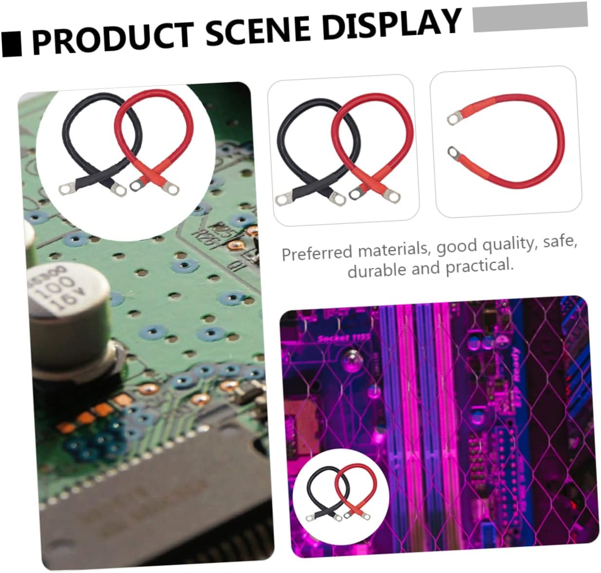 Package List 2 x battery inverter cables (60cm) Characteristics -Color: Black, Red Car Battery Cable. -Material: PVC, Copper Cable for Batteries. -Size: About 60.00X1.50X1.00cm/23.58X0.59X0.39inch Power Cable. -Preferred materials, , safe, durable and practical Battery Inverter Cables. -You can this pair of efficient and practical battery cables at Vehicle Battery Cable. - temperature resistance, superior electrical conductivity, and , will be your choice Power Inverter Cable. -Easy to operate and use, it is excellent motorcycle battery cable Copper Cable. -It has structure and stable working performance, you can use it with Cable.Goods InformationVehicle Battery Cable This is a battery cable made of copper and PVC materials.Power Cable It is reasonably designed, very stable and practical, and is designed to help you the performance of the wire.Cable for Batteries It has electrical conductivity, thermal conductivity and stability, and can serve you well.Battery Inverter Cables This is a very safe and practical battery cable that will bring you a experience.Power Inverter Cable It is made with superb craftsmanship