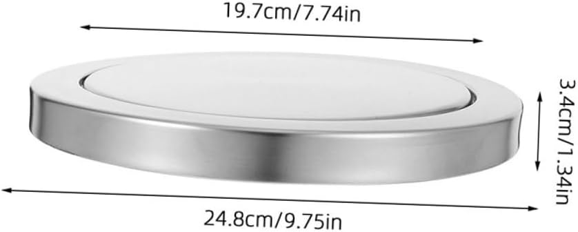Package List 2 trash can cover Features - lid design: the swing lid allows for easy use without direct hand contact, clean in homes, hotels, and other spaces round recessed trash lid -Color:Silver -Size:19.70X19.70X3.40cm/7.74X7.74X1.34in -Material:Stainless steel -Minimalist hidden design: the recessed installation keeps the lid out of sight, maintaining a tidy and uncluttered environment, suit for minimalist homes or luxury hotels kitchen countertop trash lid -sturdy stainless steel material: made from Sturdy stainless steel, this lid sturdy, making it ideal for humidity areas like kitchens and bathrooms -countertop installation: designed for embedded countertop installation, it and integrates with your sink area for a clean, modern look countertop garbage lid -Size:24.80X24.80X3.40cm/9.75X9.75X1.34in -Product Info: Flip the trash can lid -Wide compatibility with cutout sizes: fits cutout sizes ranging from 21.5-24 cm, making compatibility with various countertop designs for easy and flexible installationGoods Descriptionstainless steel trash bin cover Crafted from sturdy stainless steel, this flush-mount trash can lid offers a sleek and modern design that integrates into countertops.stainless steel garbage can lid Ideal for kitchens, bathrooms, and hotel rooms, it enhances both functionality and aesthetics.bathroom flip lid Its swing-top mechanism makes easy waste disposal while maintaining a clean and organized appearance