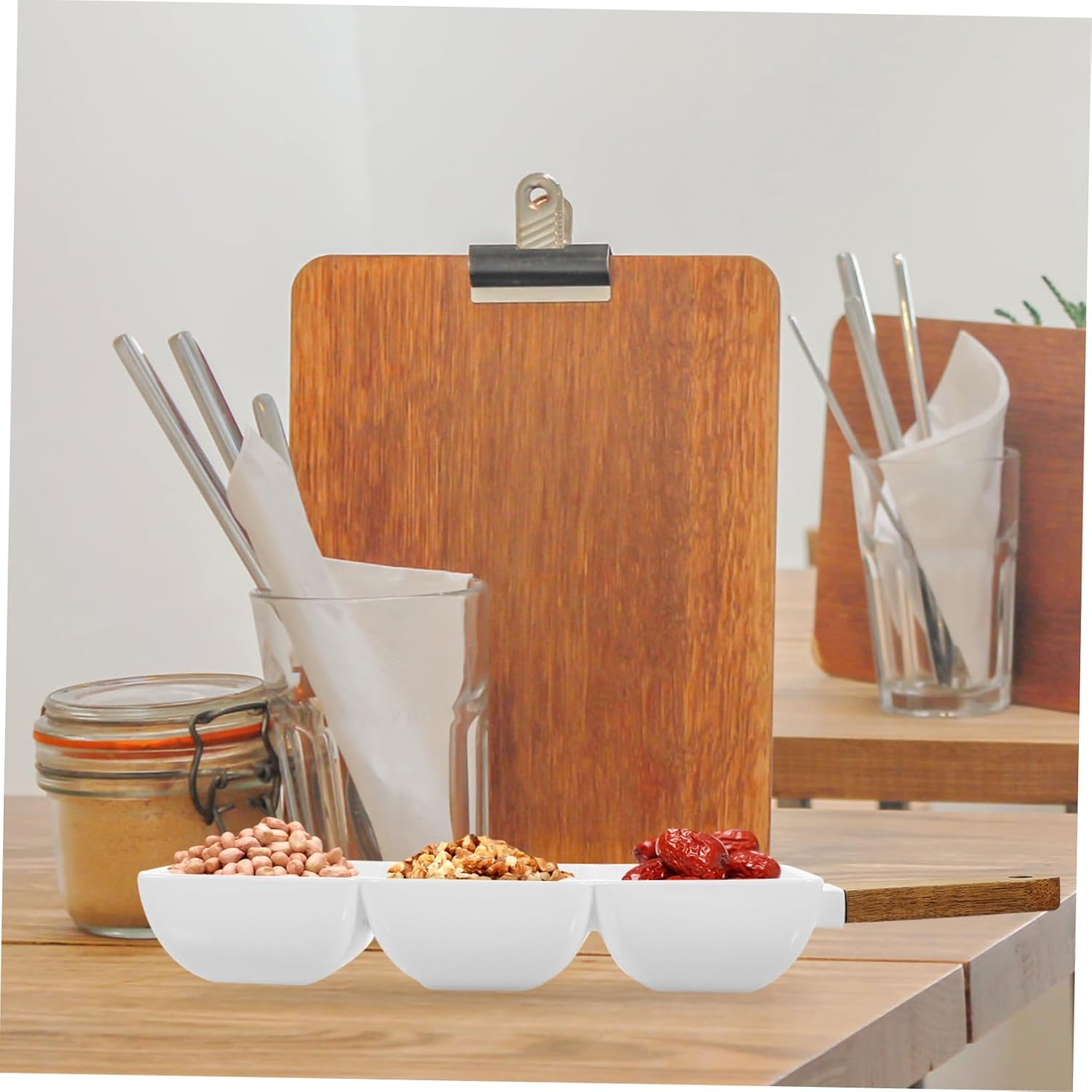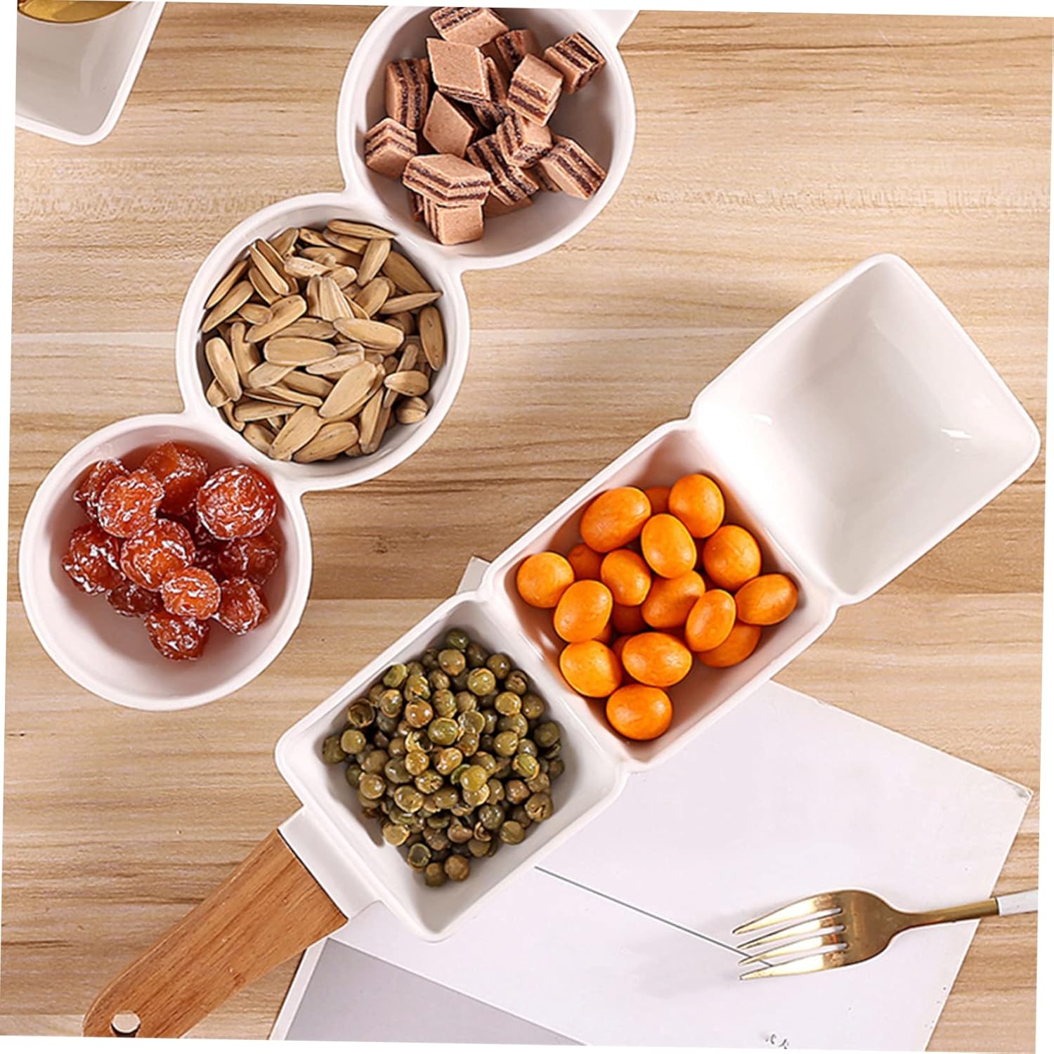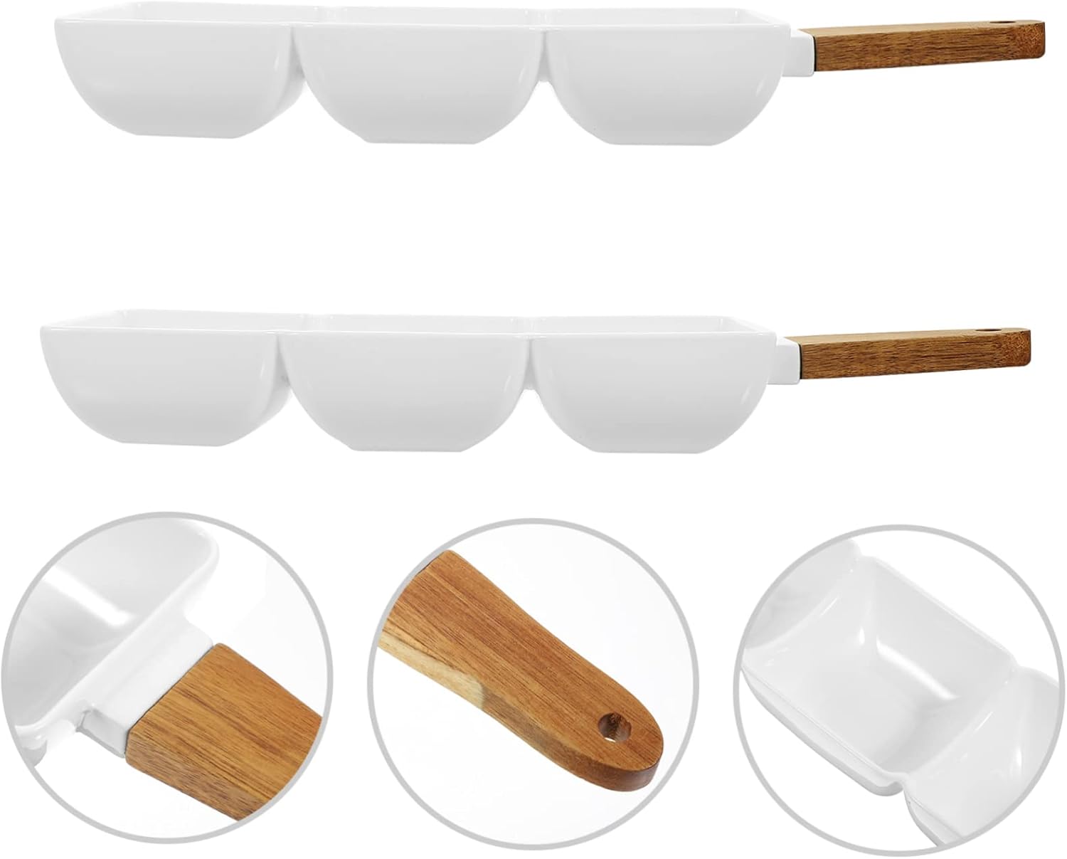 Package List 2 x Storage Trays Features - Size: 37.50X8.50X4.50cm/14.74X3.34X1.77in snack bowl -Material:Ceramic, wood ceramic divided serving dishes - The appetizer tray is made of ceramic with a wooden handle. Smooth edges that won't hurt your hands. Our ceramic plates are divided into 3 compartments, allowing you to serve a variety of appetizers Ceramic Divided Plate. - Stable bottom, this snack bowl with wooden handle can be placed firmly. Smooth surface, easy to clean ceramic small bowl. - ColorWhite ceramicmulti-functional divided plate - Suitable for holding sauce, salt, vinegar, sugar, salad, flavor, spices, snack and appetizers, etc porcelain divided dish. - Suitable for many places, such as home, restaurant, hotel, buffet, hot pot shop and more candy bowl. - craftsmanship practicability and durability, which is very small bowls ceramic.Goods Informationceramicmulti-functional divided plate This product is a snack bowl.dip sauce bowl with handle Made of premium ceramic material, and .dip serving bowls With stable bottom, the snack bowl an be placed on the table firmly.serving bowl Multifunctional use, suitable for storing cold dishes, sauce, snack, fruit, etc