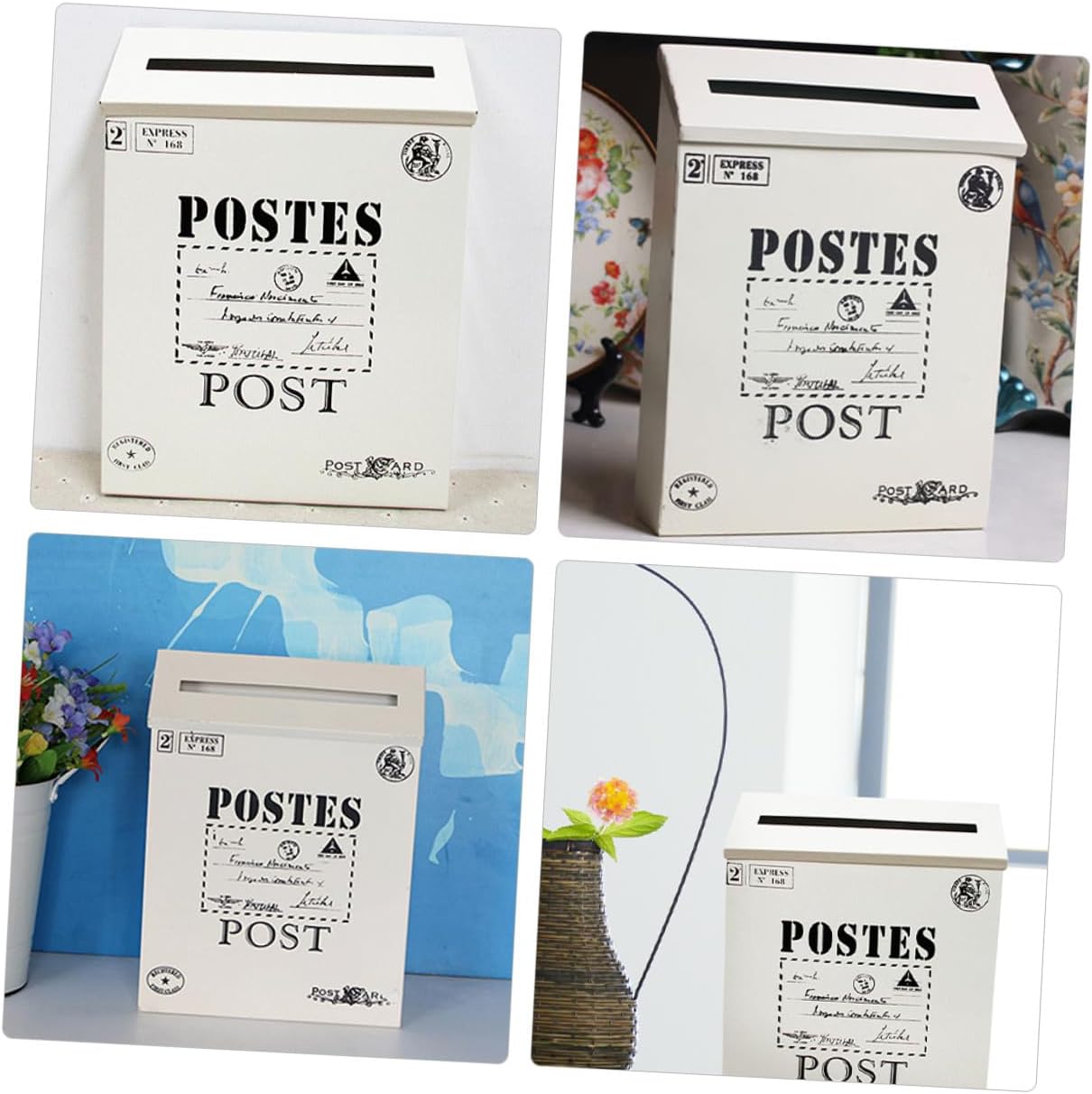 Package Include 2 x mail boxes Characteristics -Material:Iron -Size:29.00X21.60X6.00cm/11.40X8.49X2.36in -Color:White -Product Info:Retro tin mailbox -Made of great iron material, the vintage letter box is durable and sturdy, safe and . -Retro style, simple design, it is lightweight and wall-mounted, space-saving and convenient mailbox wall mount. -With its simple design and practical functions, it will win your love well and bring you a good experience vintage wall mount mailbox. -With a proper storage capacity, you can put many mails and letters what you need wall-mounted mailbox. -With the vintage mailbox shape design, it also can be a perfect wall decoration for your home outdoor wall-mounted mailbox.Goods Descriptionoutdoor wall-mounted mailbox Wide enough to accommodate letters, mail and so on.vintage mailboxes for outside Very simple and ornamental.vintage metal mailbox Also can be a vintage letter box decoration for your garden or wall.front door mailbox Creative design is great for home use.wall-mounted mailbox It protects the letter perfectly.mailbox wall mount Made of iron material, the wall mounted letter box is durable and practical use