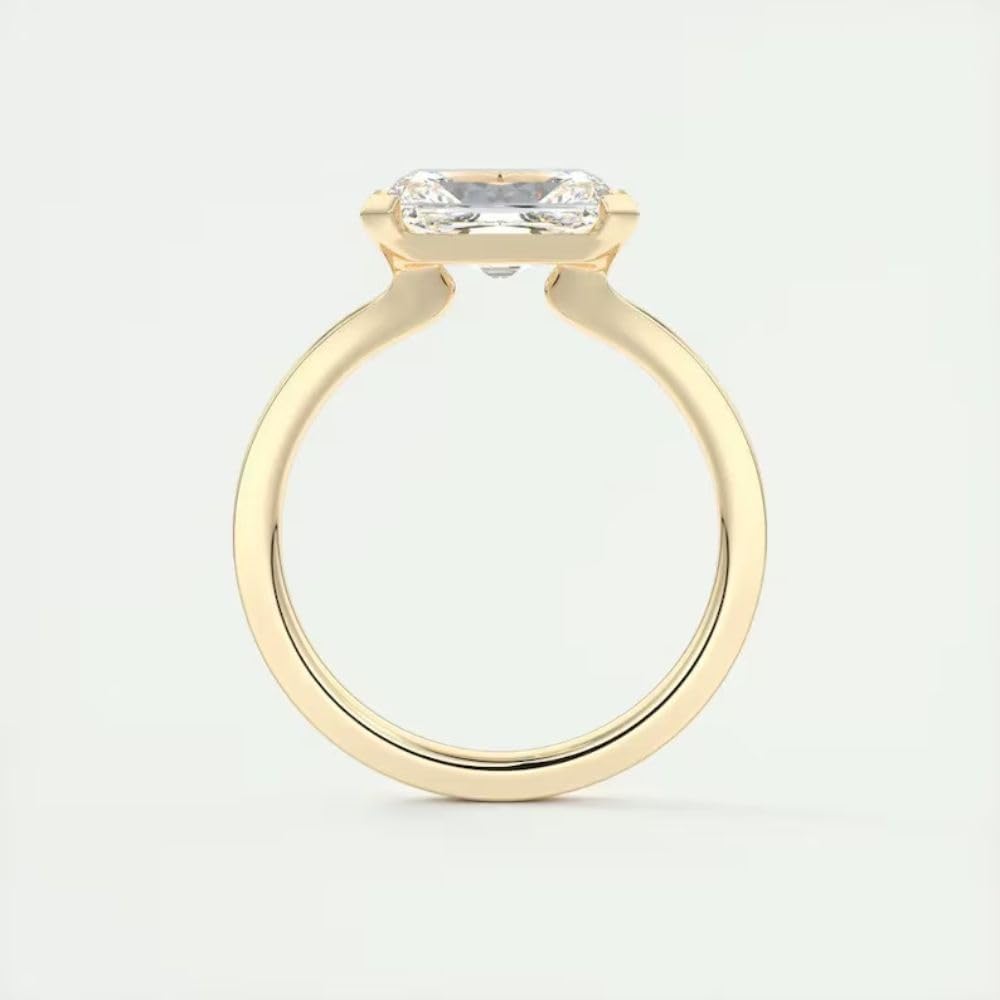3 Ct Radiant Cut East West Diamond Elegant Half Bezel Solo Solitaire Promise Ring Delicate Women's Engagement Rings 14K Yellow Gold Plated 925 Sterling Silver Handmade Proposal Ring. The process of jewelry making is no less than magic! This entire jewelry design process involves many steps like designing, model making, and the final phase of quality check. We are happy you have chosen to look at our unique and affordable jewelry designs! We are excited to help you find your perfect creation, so please contact us with any questions! Our designs are exclusive and Handmade. Material: Sterling Silver, which keeps glossy for a lifetime and is not harmful to people. Sterling Silver's strength makes it an excellent choice of material for jewelry. It is resistant to scratching and it will retain its beauty for years. Excellent Quality, Good Price, Comfort Fit Safe, and Comfortable to Wear in Daily Life. Gift idea: A wonderful gift for yourself, your lovers, your friends, your family, or other people dear to you on many occasions: birthdays, Christmas, dating, graduation, wedding, Mother's Day, engagement, Valentine's Day, and any special dates to you.