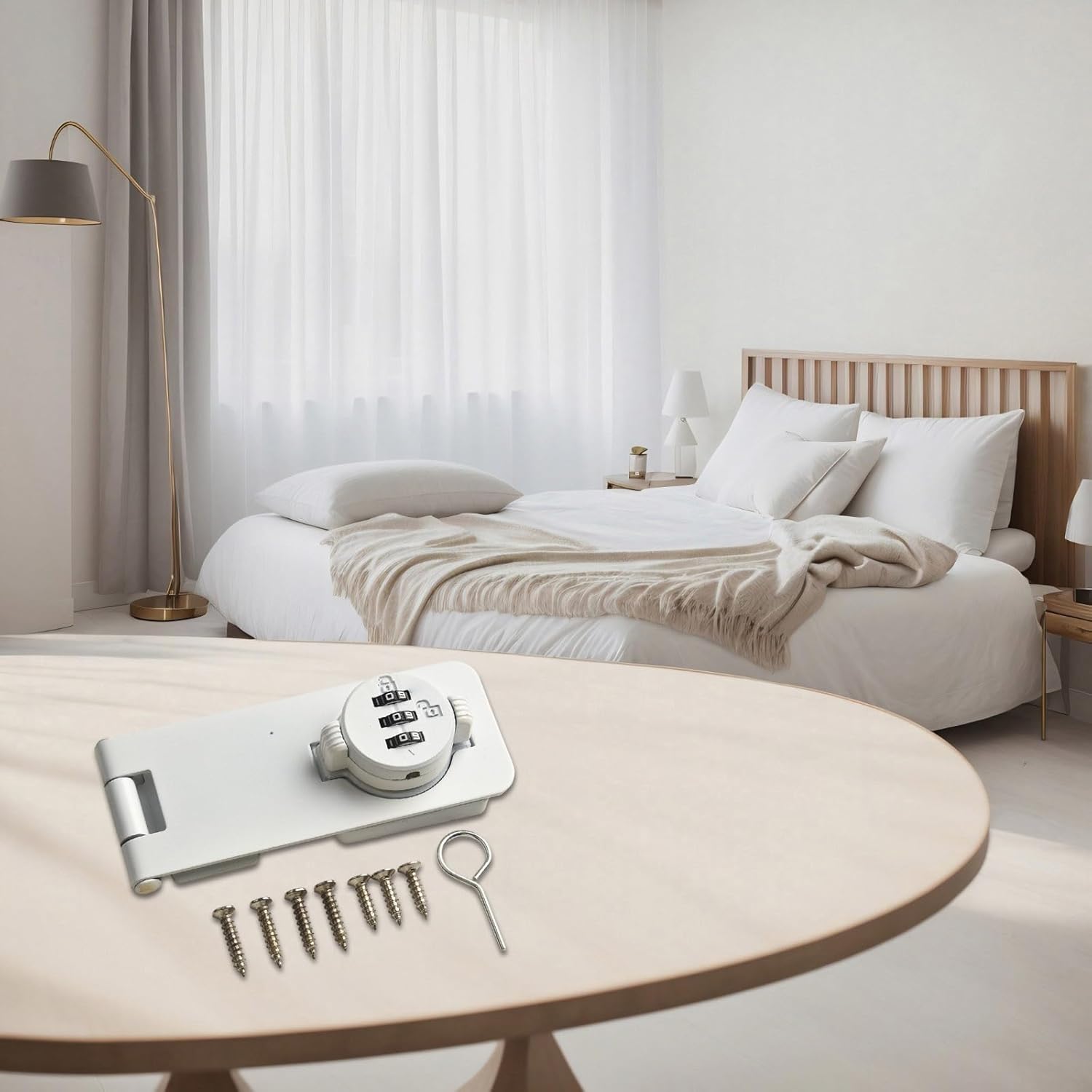 Product description Features:*Enhanced Security: The keyless combination lock provides an effective way to safeguard your belongings, make sure that only those with the correct password can for Access your cabinets and drawers, thus keeping your valuables protected from unauthorized for Access.*Convenient Keyless for Access: Featuring a user-friendly numeric passcode system, this lock eliminates the hassle of carrying keys. You can easily set and change the code whenever needed, making it a flexible and convenient choice for home security.*Versatile 3-Digit Code: With a 3-digit combination that allows for up to 1000 unique codes, this lock offers a high level of security for various applications, giving you peace of mind that your items are secure.*Simple Installation: The lock comes with all necessary mounting hardware and straightforward instructions, making installation a breeze. You won't need special tools or professional help to set it up, allowing for quick and easy use.*Multi-Purpose Use: Designed for a variety of applications, this latch lock is suitable for kitchen cabinets, drawers, cupboards, pet doors, and even safes. Its versatility makes it a for good choice for securing different areas in your home.Specifications:*Product Name:Password lock*Material:Iron + zinc alloy*Size:4.5 inches*Color:Black,WhitePackage Content:1 * Password lock Manufacturer Contact Information no