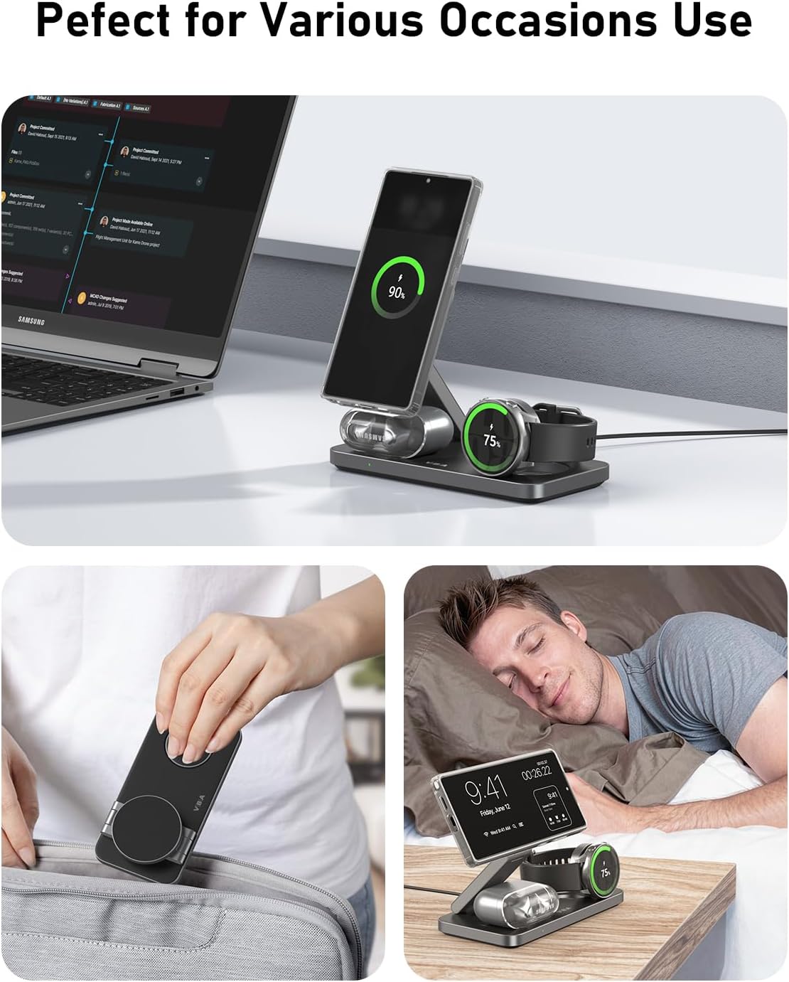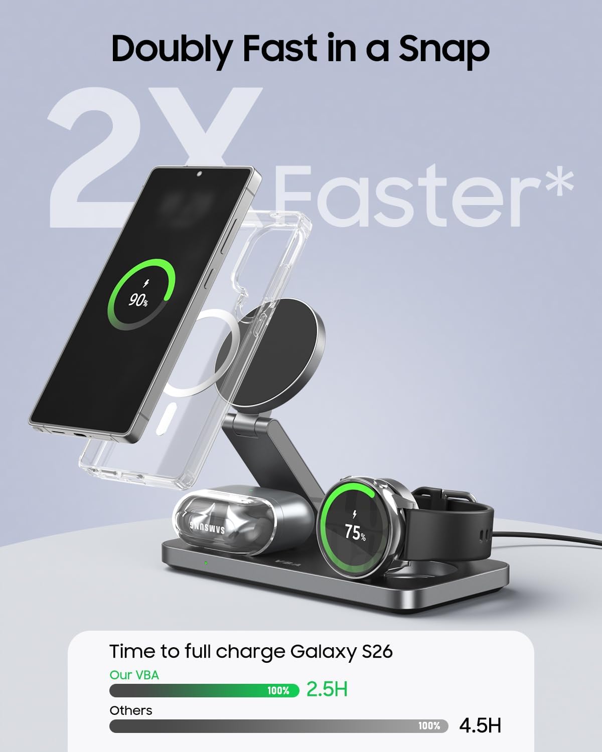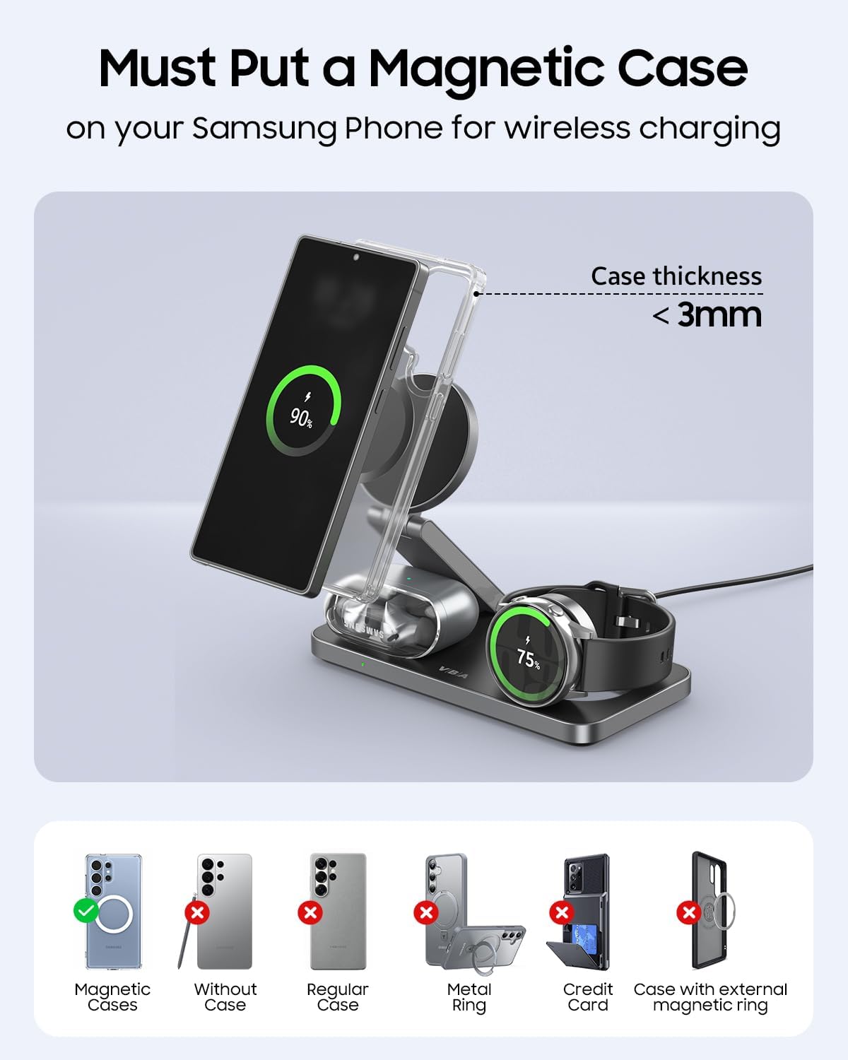 VBA 3 in 1 Wireless Charging Station for Samsung,Foldable Android Phone Charger for Samsung Galaxy S25 Ultra/S24 Ultra/S23/Flip7,Galaxy Watch 8/8 Classic/Ultra/7/6/5, Galaxy Buds 3 Pro/3