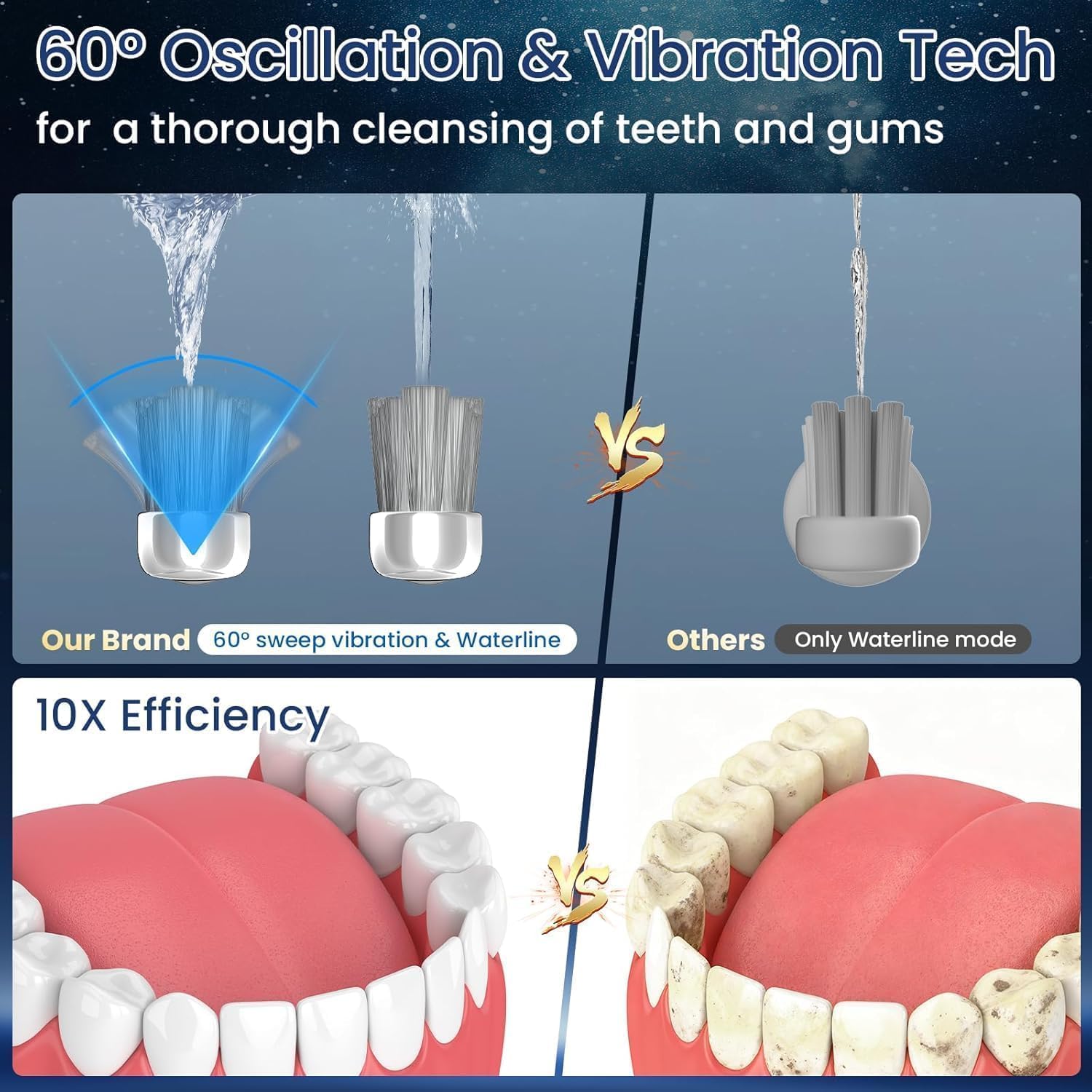 | Other Special Features of the Product | 10x Plaque Removal, 1st 60° Sweeping Tech, 30-day Travel Battery, Dual Water Fill System, Saves 50% Routine Time |