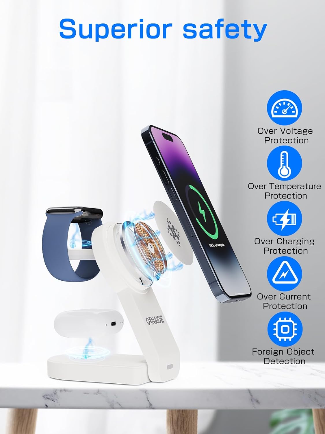 | Compatible Devices | AirPods Pro 2/Pro/4/3/2 (Must Have Wireless Charging Case), Apple Watch Ultra 2/Ultra/SE 2/SE/S10/S9/S8/S7/S6/S5/S4/S3/S2, iPhone 16, iPhone 16 Plus, iPhone 16 Pro, iPhone 16 Pro Max; iPhone 15, iPhone 15 Plus, iPhone 15 Pro, iPhone 15 Pro Max; iPhone 14, iPhone 14 Plus, iPhone 14 Pro, iPhone 14 Pro Max; iPhone 13, iPhone 13 Mini, iPhone 13 Pro, iPhone 13 Pro Max; iPhone 12, iPhone 12 Mini, iPhone 12 Pro, iPhone 12 Pro Max; 【Note】iPhone 8-11 series Must have Mag-Safe cases |