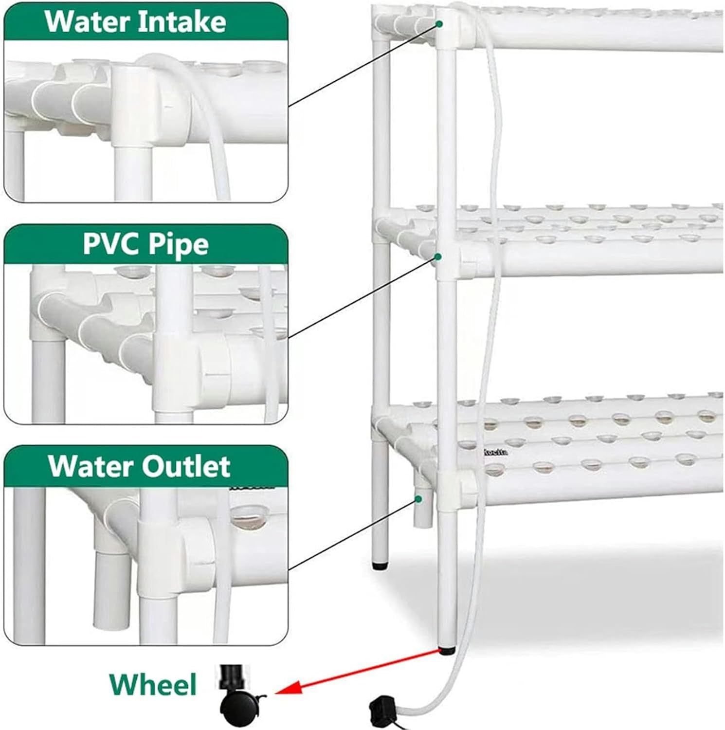 Manufacturer:This hydroponic indoor or outdoor planting system is extremely easy to assemble and use, and is designed for quick and convenient vegetable gardening. Very suitable for beginners! No experience is required. With wheel, you can move it easily. Don't worry about it getting out of the sun. It is especially suitable for leafy vegetables, such as lettuce, herb, celery, cabbage, etc. The water tank is made of food-grade durable PVC-U material, pollution-free, suitable for the production of vegetables, herbs and berries, and can hold up to 108 kinds of plants. Grow as much as possible! No odor, no weeds, arable land, saving labor and time.Specification: Material: PVC-U Drinking Water Pipe Pump Voltage: 110-240V Parameters: 89*39*107cm Number of holes: 108 Hole diameter: 3.2cm Features: simple assembly, built-in water inlet pipePackage Included: (The water tank is not included) 1 * Hydroponics Growing Pipe 1 * Water Pump 108 *Engraftment Basket 1 * Sponge 1 * HoseIf you have any questions, please write to us, we will be hay to help you.