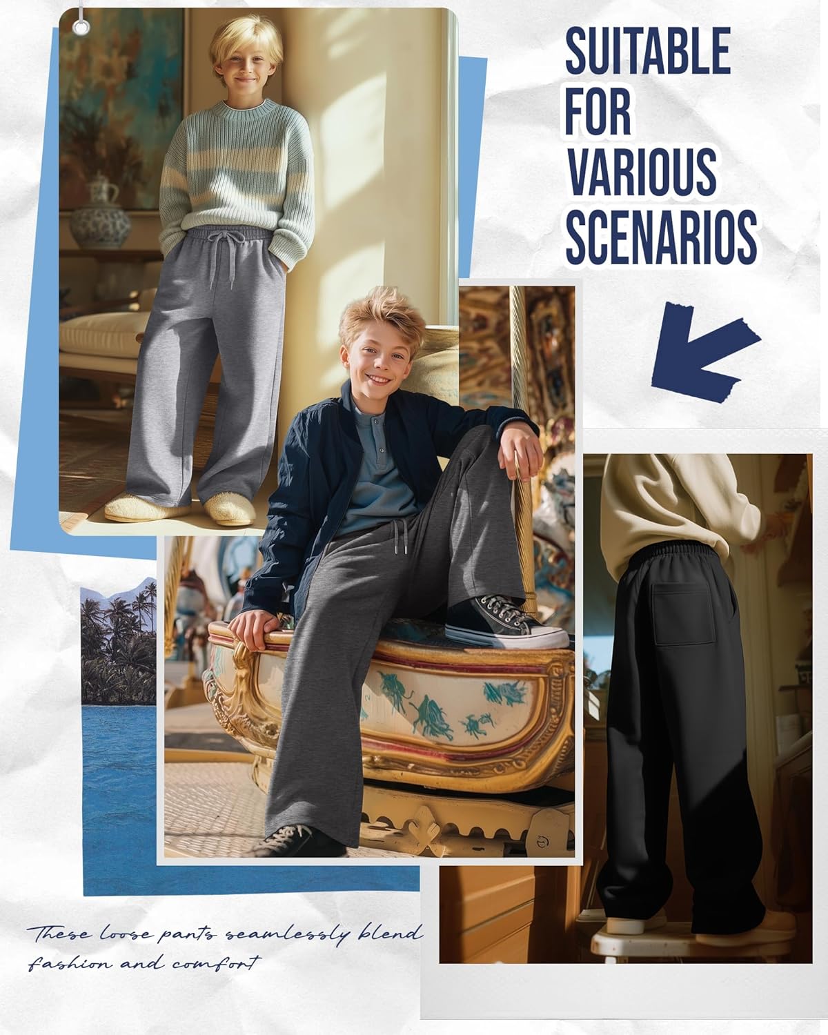 Features: Ideal choice: The boy's loose sweatpants are soft and comfortable, you can also give them as gifts to your loved ones. Easy care: Machine and hand wash safe. Recommend to wash in cold water and tumble dry low or line dry. Specifications: Material: 60% Cotton, 35% Polyester, 5% Spandex Package includes: 3 x Boy's baggy jogger pants with pockets Notes: Manual measurement, please allow slight errors on size. The color may exist a slight difference due to different screen displays