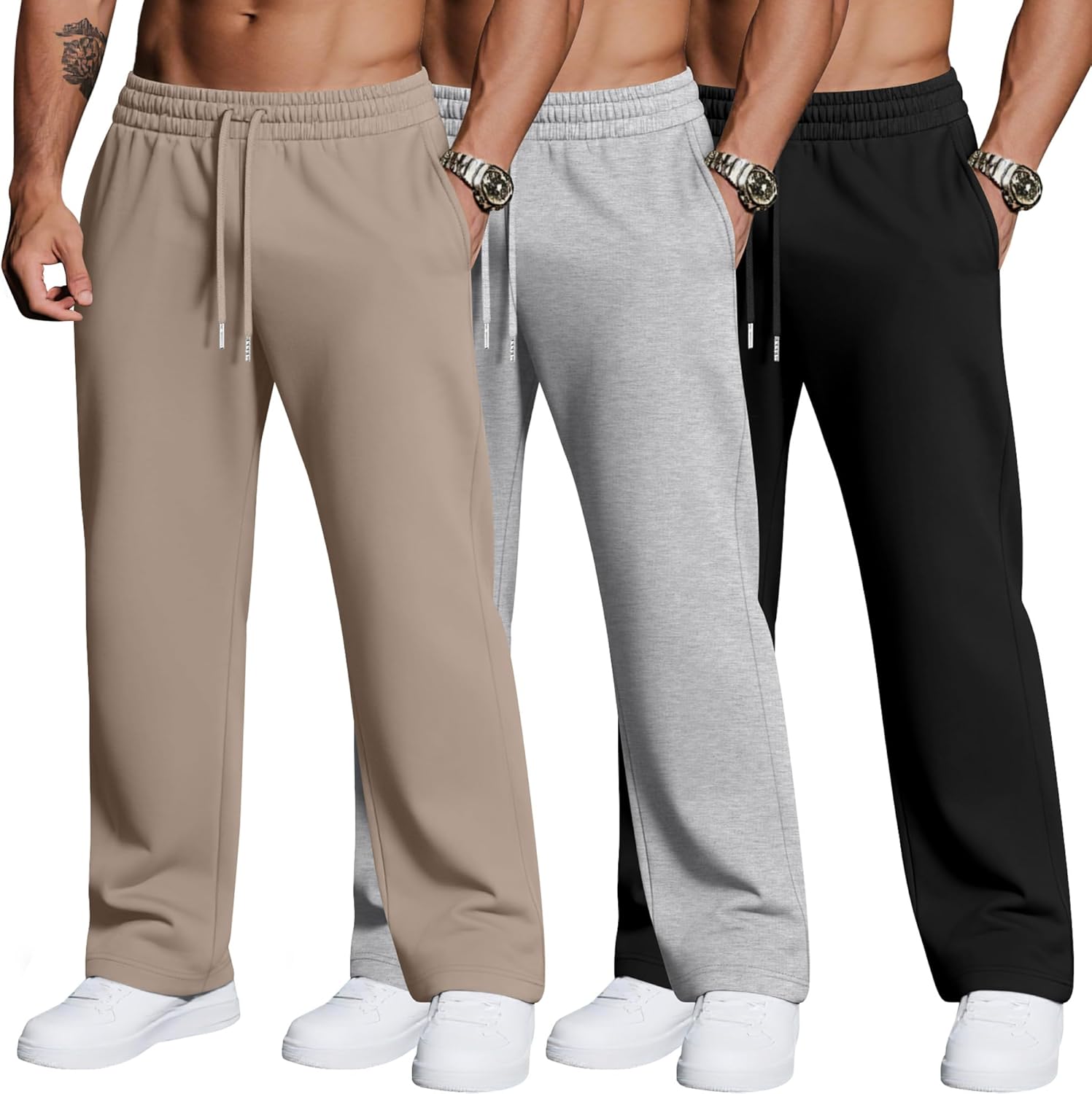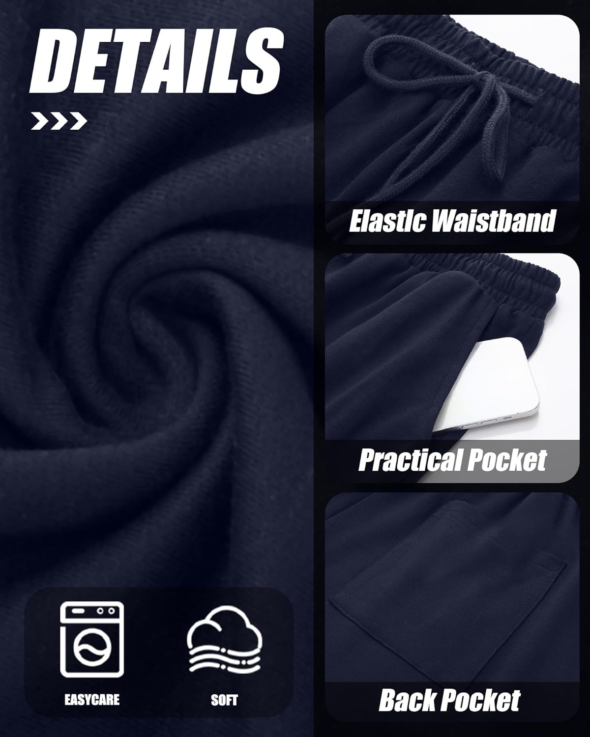 Features: Size selection: Please check our size chart before you place order for comfortable wearing. Garment: Machine washable or hand wash with cold water, easy to wash and dry, hang or line dry Specifications: Material: 85% Polyester, 10% Cotton, 5% Spandex Package includes: 3 Pack men's plus size sweatpants Notes: Manual measurement, please allow slight errors on size. The color may exist a slight difference due to different screen displays