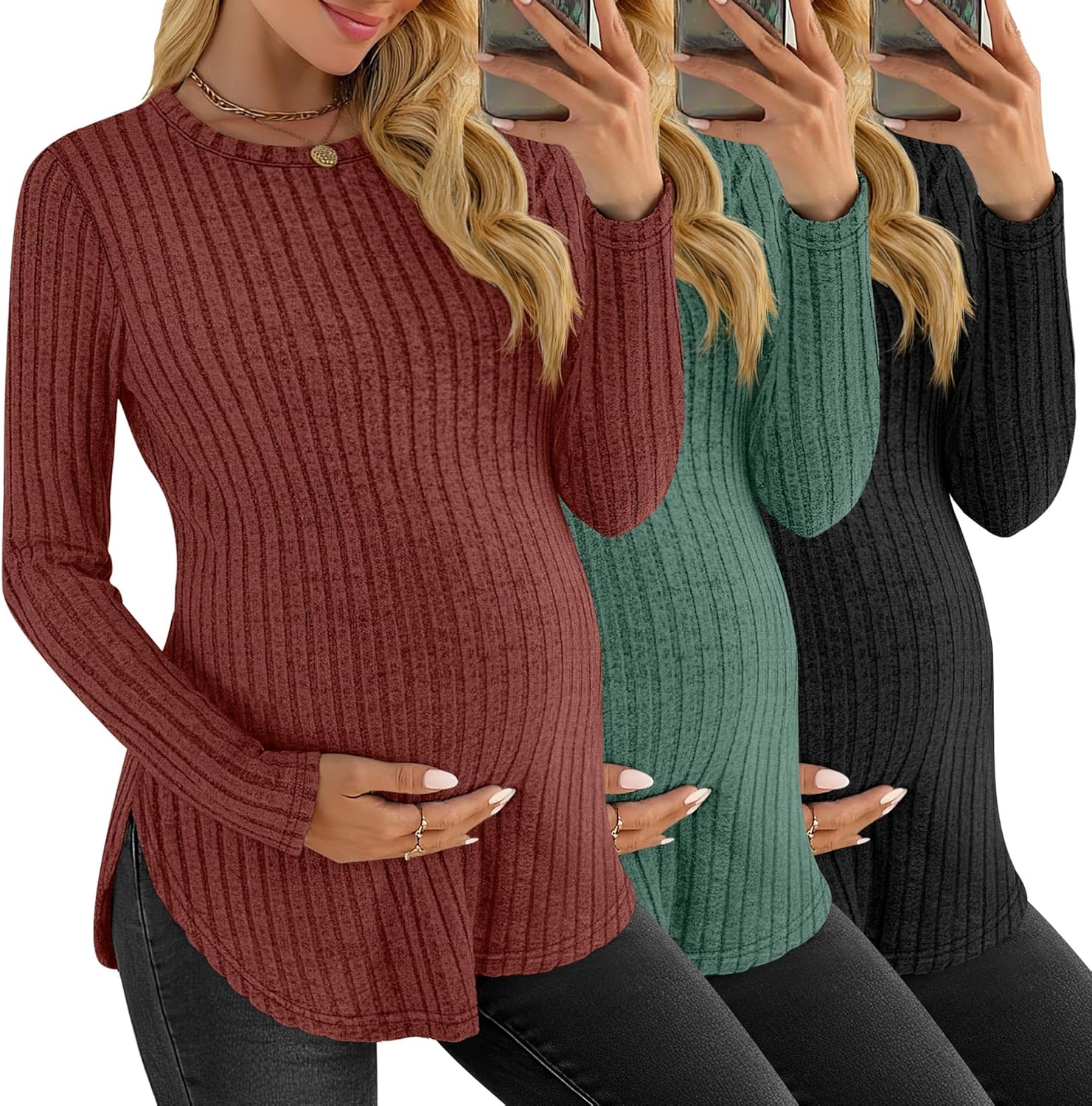 Features: Size selection: Please check our size chart before you place order for comfortable wearing. Garment: Machine washable or hand wash with cold water, easy to wash and dry, hang or line dry Material: 80% Polyester, 15% Cotton, 5% Spandex Package includes: 3 x Women's maternity shirts Notes: Manual measurement, please allow slight errors on size. The color may exist a slight difference due to different screen displays