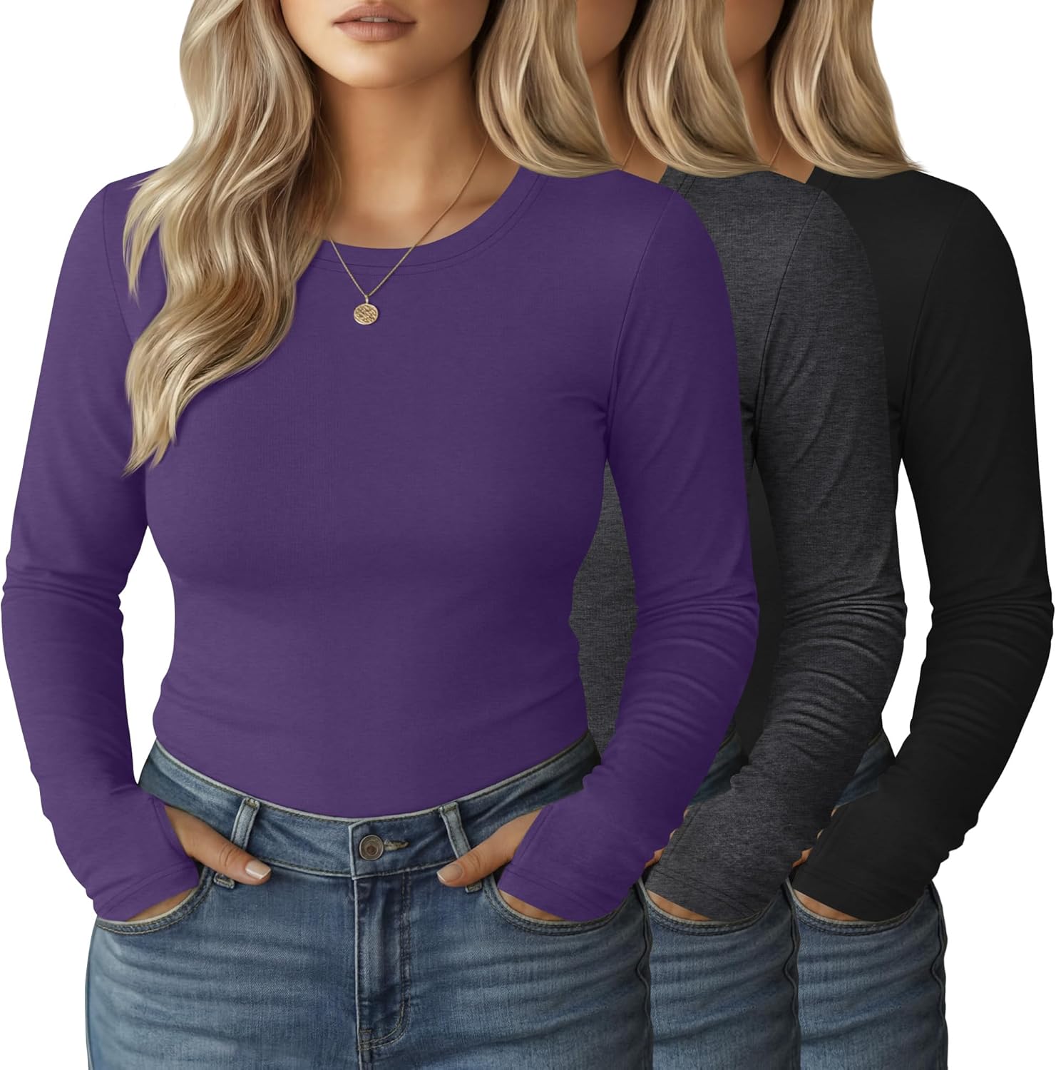Features: Versatile Style Fit: The plus size tops for women are paired with jeans, overalls, casual pants, jackets, knit cardigans, and coats, it is a basic item for your wardrobe. Easy Care: Machine washed or hand washed in cold water on a gentle cycle, hang to dry, and will not shrink easily after multiple washes. Do not bleach. Specifications: Material: 60% Polyester, 35% Cotton, 5% Spandex Package includes: 3 Pack plus size thumb hole tops for women Notes: Manual measurement, please allow slight errors on size. The color may exist a slight difference due to different screen displays