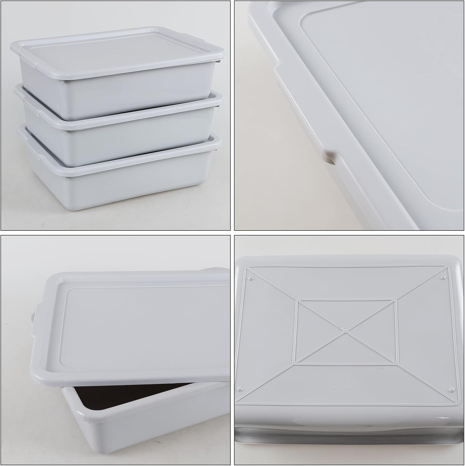 Knifefish 3 Packs 15 L Plastic Bus Tubs with Lids, Commercial Bus Box, Gray