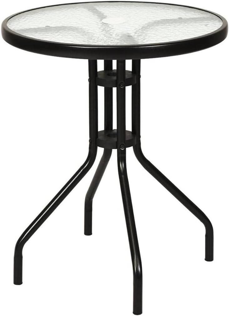 Tempered glass table top, water ripple pattern, elegant and stable Fabric fabric, not deformed, elastic and textured Detachable umbrella cutout, 2" diameter hole, fits most umbrellas on the market Curved backrest and ergonomic armrests for a comfortable seating experience Foldable design and lightweight construction save space and facilitate transportation 3 Patio Bistro Sets for Relaxing Time with Family Suitable for gardens, balconies, courtyards and living rooms, etc. Material: tempered glass + steel e + fabric Chair Dimensions: 25” x 24.5'' x 35.5'' (L x W x H) Foldable Size Chair: 33" x 22" x 4" (L x W x H) Table Dimensions: 24" x 28" (diameter x height) Table Net Weight: 13 lbs Net weight per chair: 8.5 lbs Capacity Desk: 44 lbs Chair weight capacity: 250 lbs The package includes: 1 x round table 2 x foldable chairs 1 x User Manual (other demo items not included). Notice: 1. Due to manual measurement, please allow 2-3% error, before you bid, please make sure you don't mind. 2. The color may vary due to different displays, please refer to the actual product. Please allow 2-3% error due to manual measurement