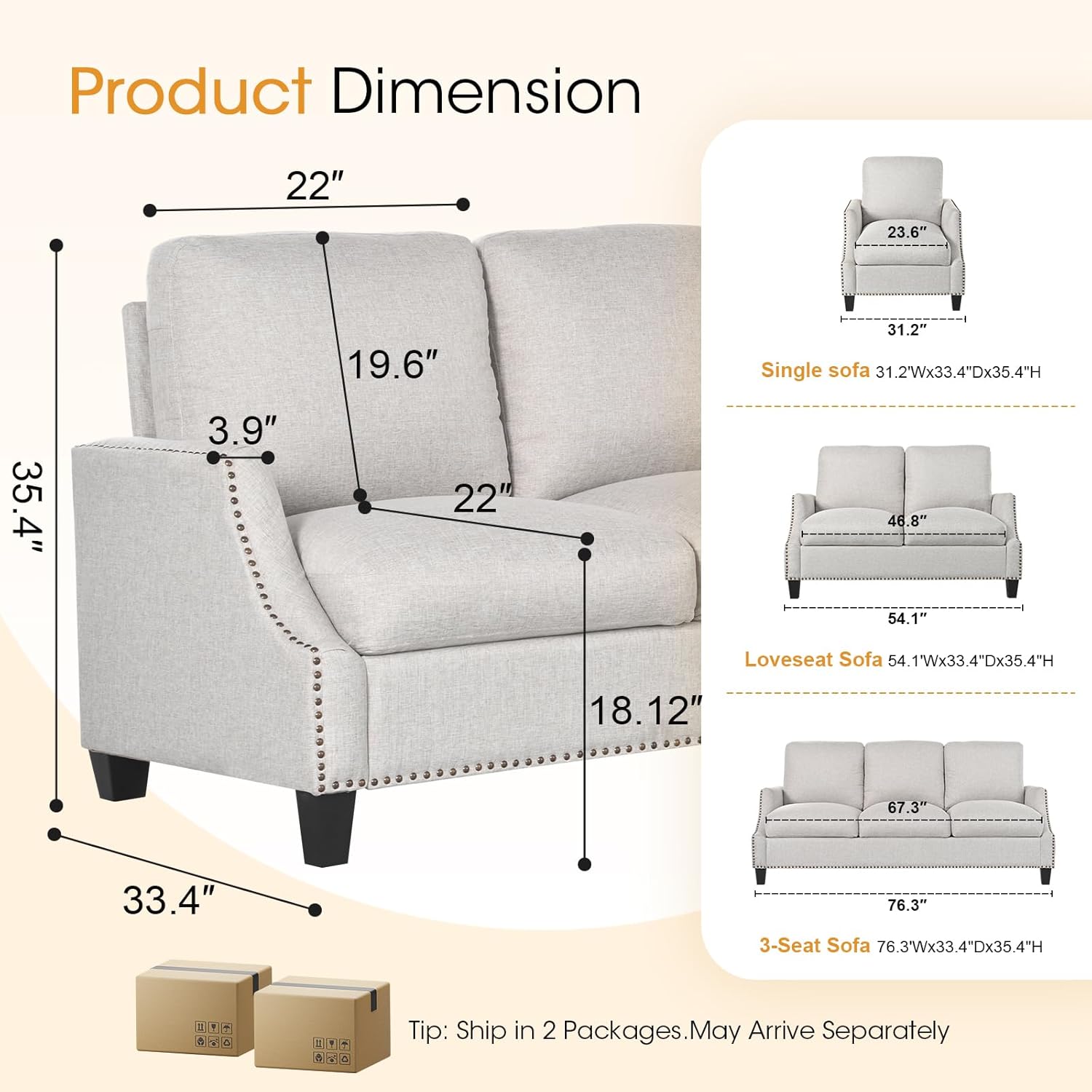 | Included Components | 3 piece sofa |