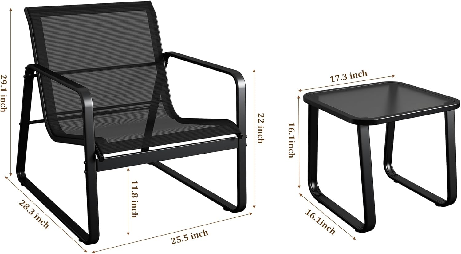 At Kasinali, we start with you. We design home essentials that anticipate your needs, adapt to your lifestyle, and grow with your family—because a truly thoughtful space isn't just beautiful, it's built around how you live, love, and evolve.Modern Design: Features a modern aesthetic that complements a variety of indoor and outdoor decor styles.Metal Frame: Constructed with a robust metal frame to ensure long-lasting stability and reliability.Sturdy Glass Tabletop: Includes a glass top that enhances both functionality and visual appeal.Safe Rounded Edges: Designed with rounded edges on the chairs to prevent accidental bumps and improve safety.Breathable Mesh Material: Utilizes a breathable mesh fabric that keeps you cool and comfortable during warm weather.Ergonomic Support: Offers an ergonomic design that provides reliable support for extended periods of relaxation.Versatile Application: Suitable for diverse environments such as patios, gardens, or indoor living areas.Easy-to-Clean Surface: Features a glass tabletop and mesh material that resist stains and allow for simple maintenance.Optimal Dimensions: Carefully measured proportions ensure maximum comfort and practical functionality for the user.
