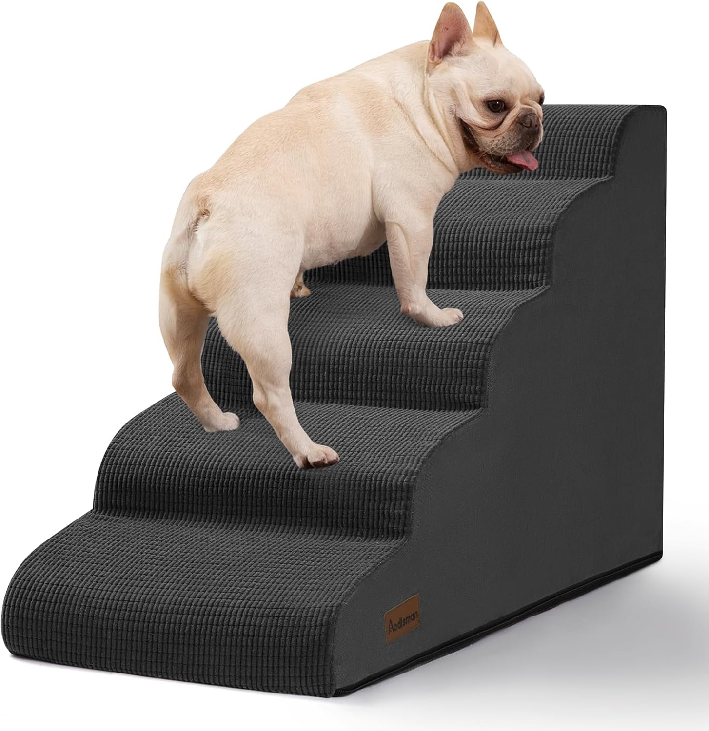Your dog can easily climb onto a couch or bed with the Pet Stairs. ;If your dog is too small or mobility challenged, this staircase can avoid the extra stress and risk your pet will incur when jumping onto the couch, as well as the stress on your joints caused by jumping. ;The stable structure allows your pet to walk on it with peace of mind, and the non-slip bottom design allows the steps to not move randomly, giving you and your small pet enough security.