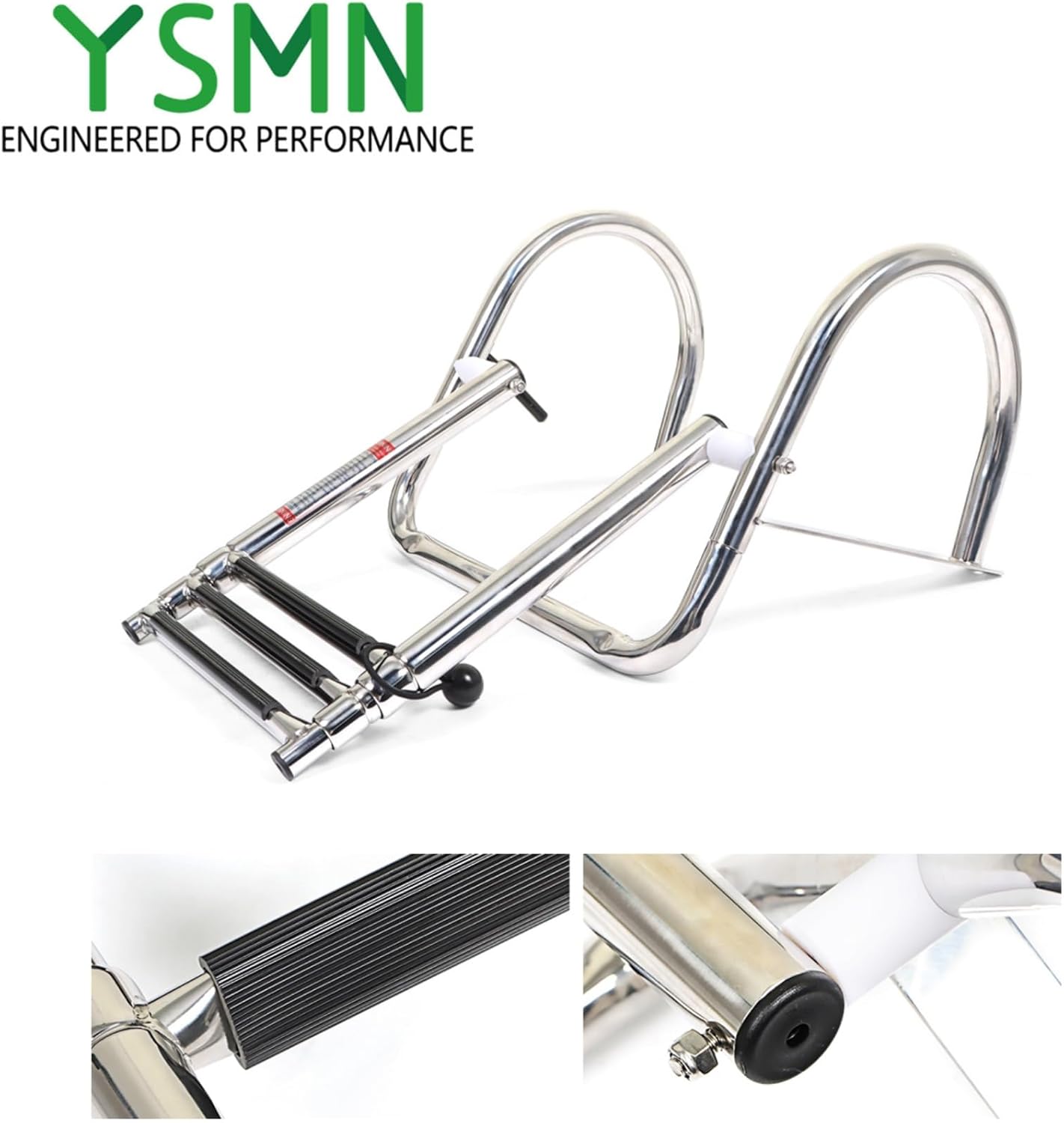 3 Steps Stainless Steel Telescoping Ladder Boat Ladder Folding Dock Ladder Replacement for Marine Boat Yacht Swimming PoolFeatures:Foldable storageDetachable ladderReusable fixed straps304 stainless steel floating ship ladderLoad-bearing: 600 lbsNote:Please confirm that the product model is consistent before purchasingPackage Included:1 x 3 Steps Pontoon Boat Ladder