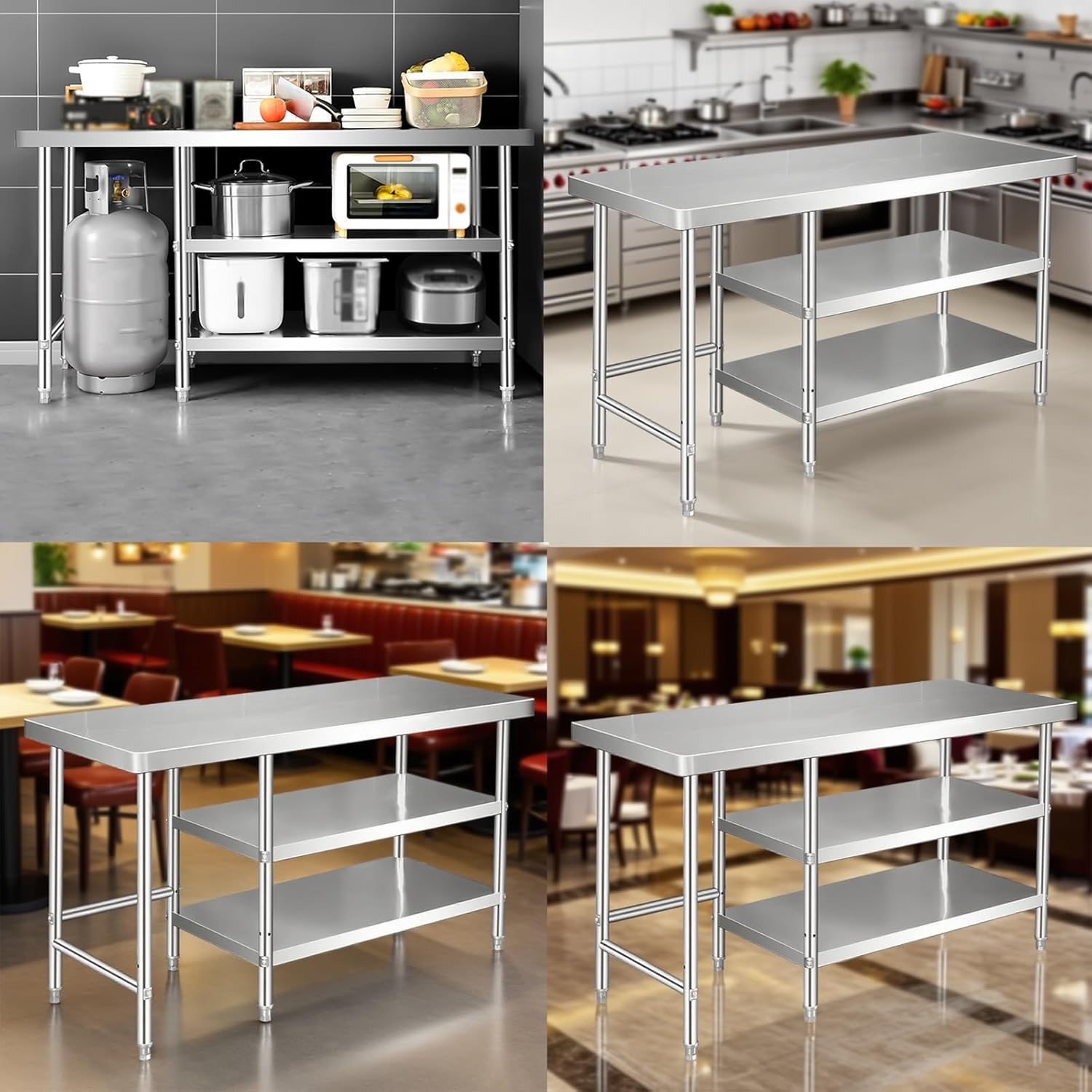 Extra-thick and extra-large work positively, multi-layer spacious design suitable for storing various kitchen utensils, can serve as a high-load storage rack, with robust load-bearing that can withstand heavy objectsName: Stainless Steel WorkbenchMaterial: Stainless steel Color: Silver Dimensions: 40x100x80 centimeters / 15.7x39.4x31.5 inches 40x120x80 centimeters / 15.7x47.2x31.5 inches 50x100x80 centimeters / 19.7x39.4x31.5 inches50 x 120 x 80 centimeters / 19.7 x 47.2 x 31.5 inches 60 x 100 x 80 centimeters / 23.6 x 39.4 x 31.5 inches 60 x 120 x 80 centimeters / 23.6 x 47.2 x 31.5 inches80 x 100 x 80 centimeters / 31.5 x 39.4 x 31.5 inches 80 x 120 x 80 centimeters / 31.5 x 47.2 x 31.5 inches Suitable for: Kitchens / Hotels / RestaurantsContents: Workbench x1Easy to useSimple to take out and put away, saving time and effort.Important notes1. Due to manual measurement, there may be slight size discrepancies.2. Due to different shooting angles or lighting conditions, there may be slight color discrepancies.