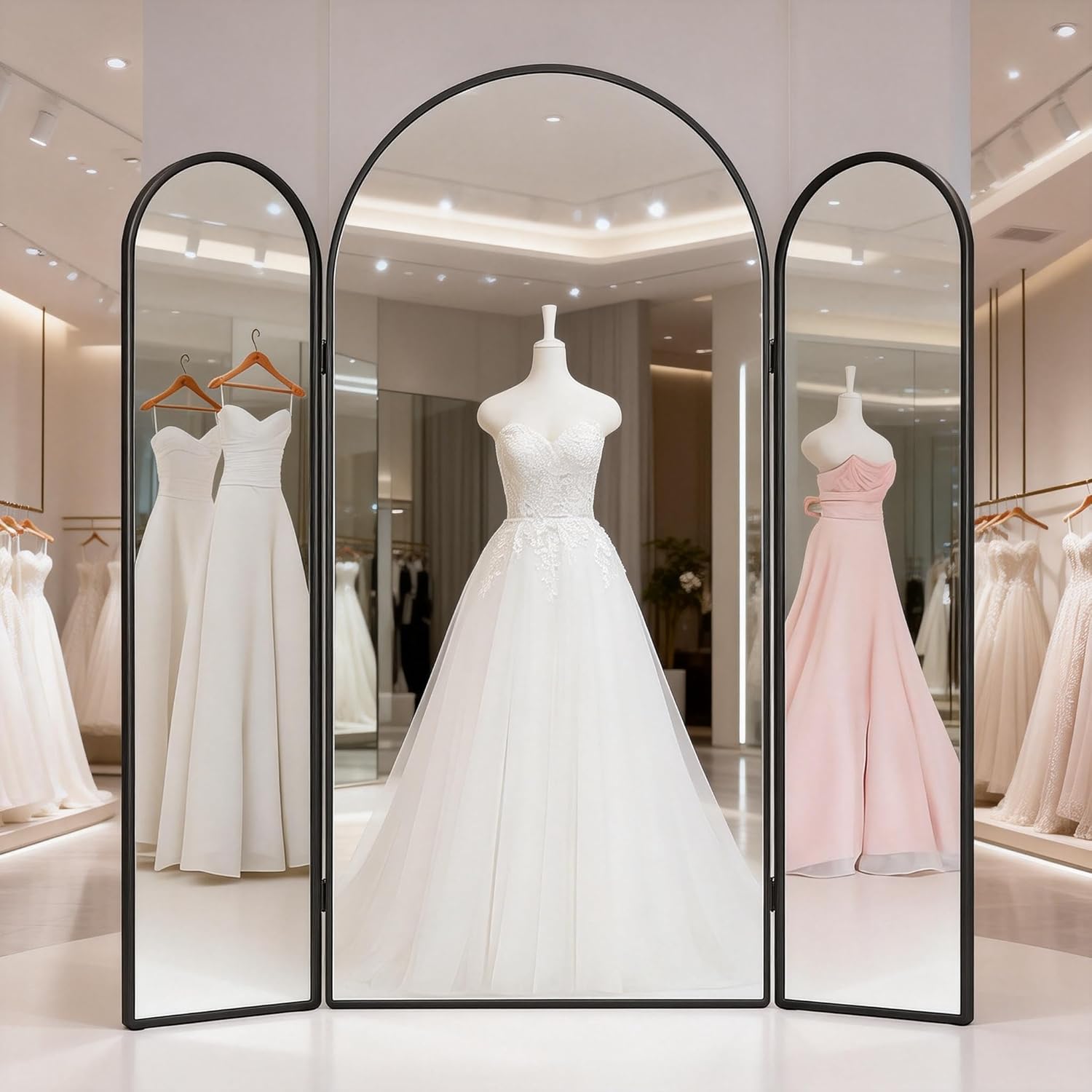| Additional Features | Arch Design, D-ring Wall Mount, Foldable Panels, Gold Metal Frame, Tempered Glass |