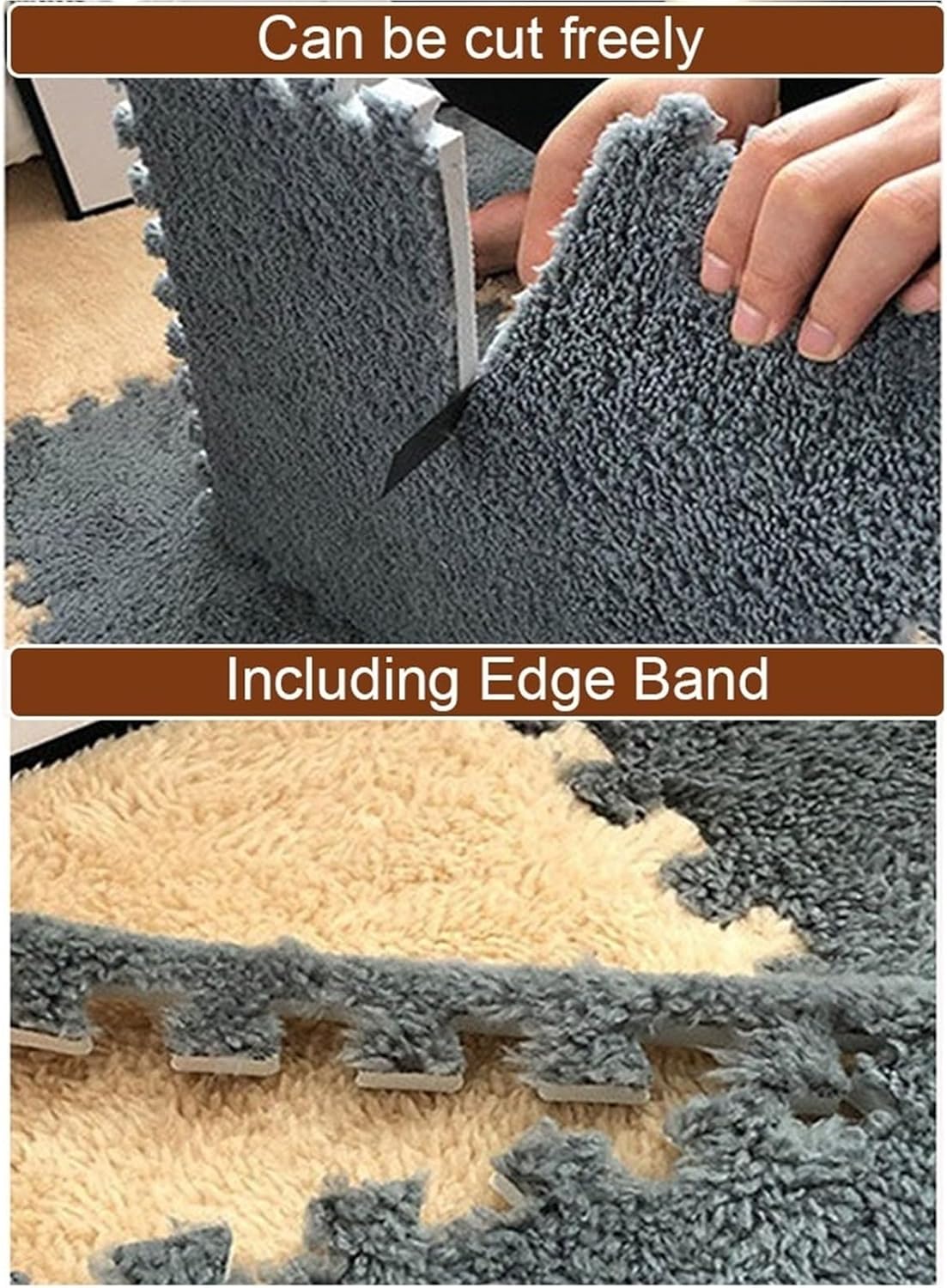 Our fluffy carpet tiles are not only practical, but also pleasant in aesthetics. They can be used to decorate various spaces, such as living rooms, bedrooms, game rooms, nursery and office.The light EVA material, the fluffy velvet surface is made of cotton and polyester, adding more comfort to the house.Size: 30cmx30cm (12 "x12")Thickness: 1 CM (0.39 Inches).Each package includes two colorsNumber: 9PCS/10PCS/12PCS/16PCS/20PCS/24PCS/30PCS/36PCS/56PCS/70PCS/90PCS/100PCSFeatures:Washing or washing machine washingYou can cut arbitrary sizeQuick stitching, easy to assembleThe feet are warm and softCalculate the actual number of purchases based on the laying area: length x width ÷ 0.09For example:The length of the room is 2 meters and a width of 1.2 meters.Number of pieces to be purchasedFor: 2x1.2 ÷ 0.09 = 26.7 piecesWhen you place an order, buy 3 pieces (30) tablets. 3 extra pieces to spare