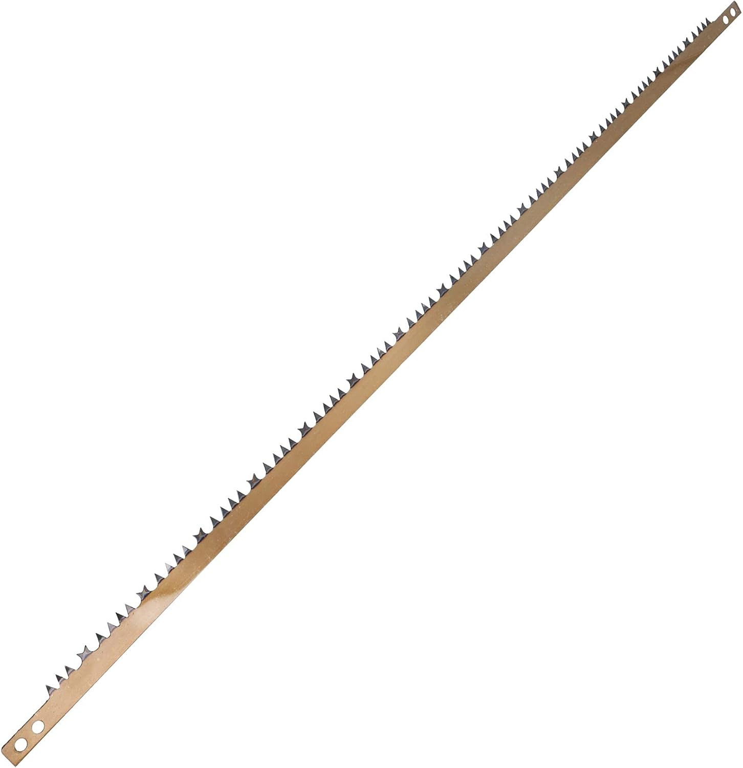 Professional bow saw blade for commercial or occasional use 30" bow saw blade This listing is for a 6 pack of blades 30"/770mm overall length of the blade so will fit any 30" bow saws Blade is suitable for cutting branches down to size Raker teeth so suitable for either green or even wet wood Hardened for strength and durability Two ground cutting edge per tooth 65mn steel heat treated for maximum strength and durability