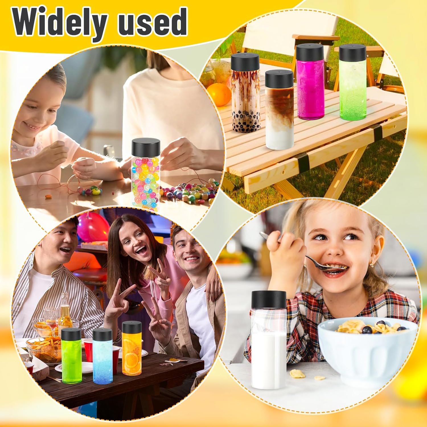 Product Description:b> 1. Plastic bottles with caps are compact, portable and easy to use2. Sensory bottles are made of premium quality PET, safe and environmentally friendly, high transparency, sturdy and durable and can be reused3. Our plastic juice bottles with caps12 oz/350ml, high sealing and leak proof4. Sensory bottles empty can be used to hold beverages such as milk, juice, water, milkshakes, iced coffee, tea, etc. it is also suitable for indoor and outdoor activities such as birthdays, weddings, camping, picnics, etc.p Product Specifications:b> Material:premium quality PETQuantity:35 piecesColor:transparentThe Products Include:b> 30x12oz/350ml bottles2x stickers2x funnels1x sponge cup brushe