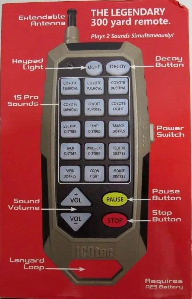 The NEW and highly improved 300+ Electronic Predator Call also known as The Reaper, offers an outstanding value when it comes to quality, performance and ease of use. ICOtec has improved on one of the most sold models in the electronic game calling industry. 300+ Call Features: 300-yard remote range 100-yard Bluetooth range Play two sounds simultaneously for stubborn coyotes New remote power switch New crystal audio sound clarity Pause button