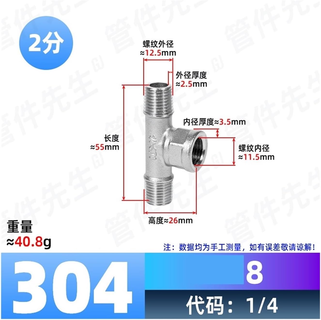Joint valveThreaded Tube FittingsModel: Outside and inside tee: Place of originMainland China:ProvinceZhejiang ProvincePrefecture and City: Wenzhou City: Color Classification304 stainless steel 8=2 points 304 stainless steel 10=3 points 304 stainless steel 15=4 points 304 stainless steel 20=6 points 304 stainless steel 25=1 inch 304 stainless steel 32=1.2 inches 304 stainless steel 40=1.5 inches 304 Stainless steel 50=2 inches 304 stainless steel 65=2.5 inches 304 stainless steel 80=3 inches: tee typeSmall and medium three links