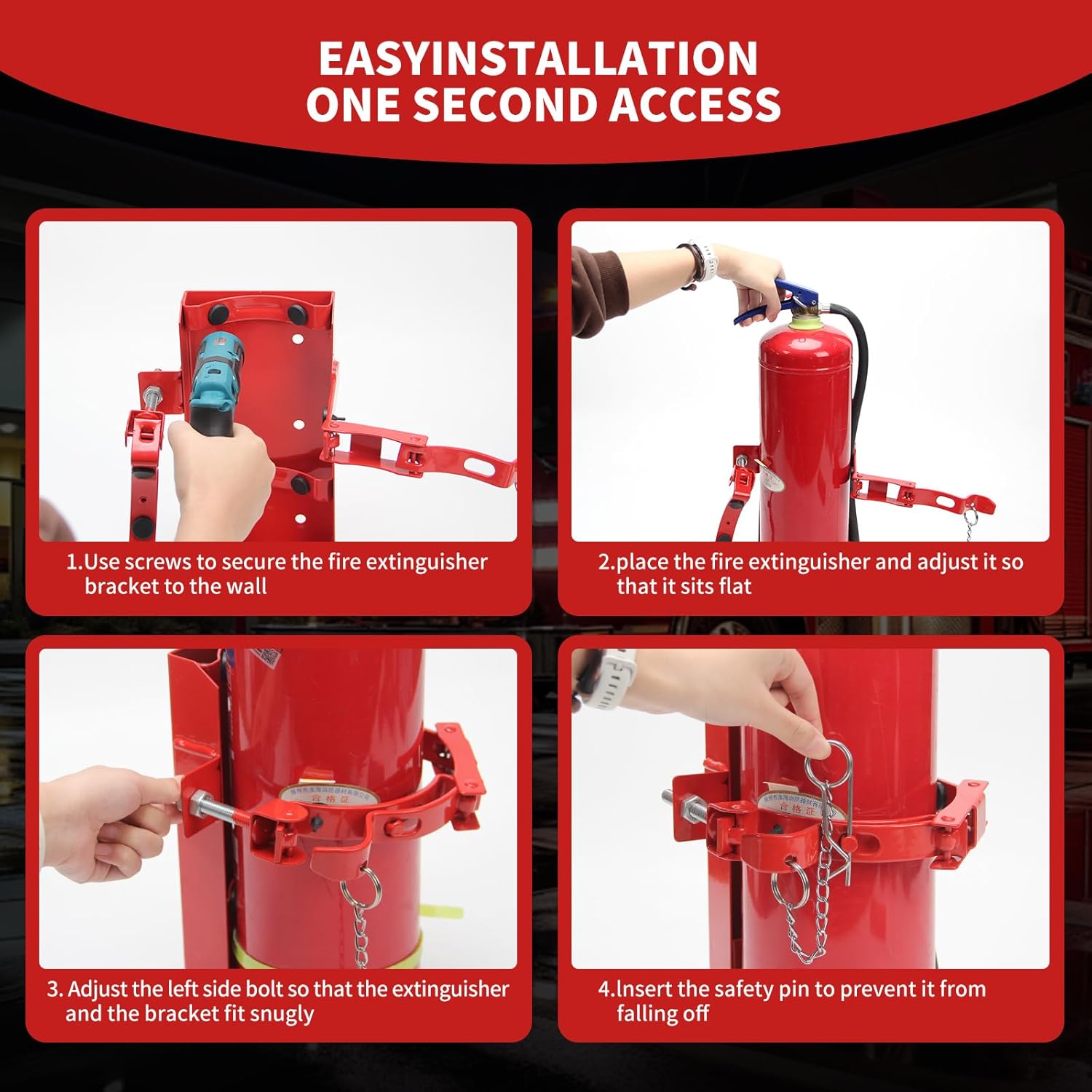Fire Extinguisher Bracket Heavy-duty steel,Sturdy and durable Bright Red finish ,Stylish and beautiful Oxidation treatment, Anti-corrosion and rust prevention Quick access in one second,Convenient and fast