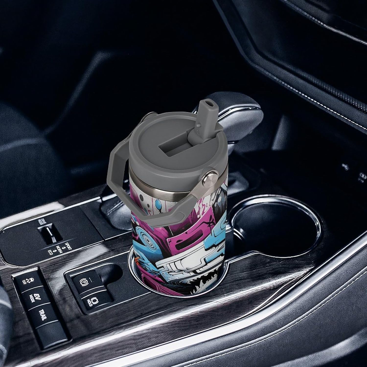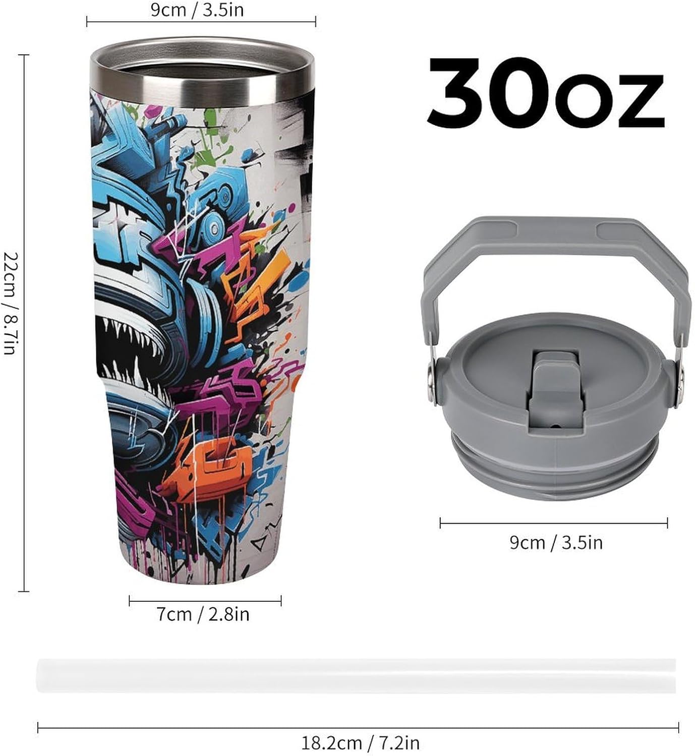 Our Colorful Graffiti travel water bottle is made of food-grade stainless steel. The wide mouth design makes it easy to clean and add ice, and the powder-coated exterior is non-slip and durable, ensuring driving safety.Whether you prefer sipping or quenching your thirst, this personalized insulated mug has you covered. Featuring a splash-proof straw design, a sealing ring securely holds the reusable straw, and a drinking spout and full-coverage lid for enhanced leak-proof performance, this mug allows you to easily carry ice water to work, meetings, the gym, or on trips.You can give it to your friends and family as a birthday, Mother's Day, Father's Day, New Year's, Thanksgiving, and holiday gift. It's a thoughtful present.