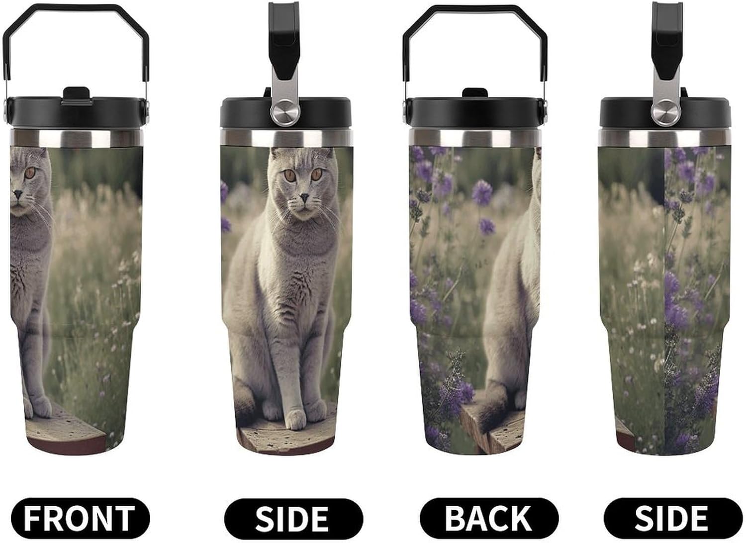 Our Gray Cat in Flower Field travel water bottle is made of food-grade stainless steel. The wide mouth design makes it easy to clean and add ice, and the powder-coated exterior is non-slip and durable, ensuring driving safety.Whether you prefer sipping or quenching your thirst, this personalized insulated mug has you covered. Featuring a splash-proof straw design, a sealing ring securely holds the reusable straw, and a drinking spout and full-coverage lid for enhanced leak-proof performance, this mug allows you to easily carry ice water to work, meetings, the gym, or on trips.You can give it to your friends and family as a birthday, Mother's Day, Father's Day, New Year's, Thanksgiving, and holiday gift. It's a thoughtful present.