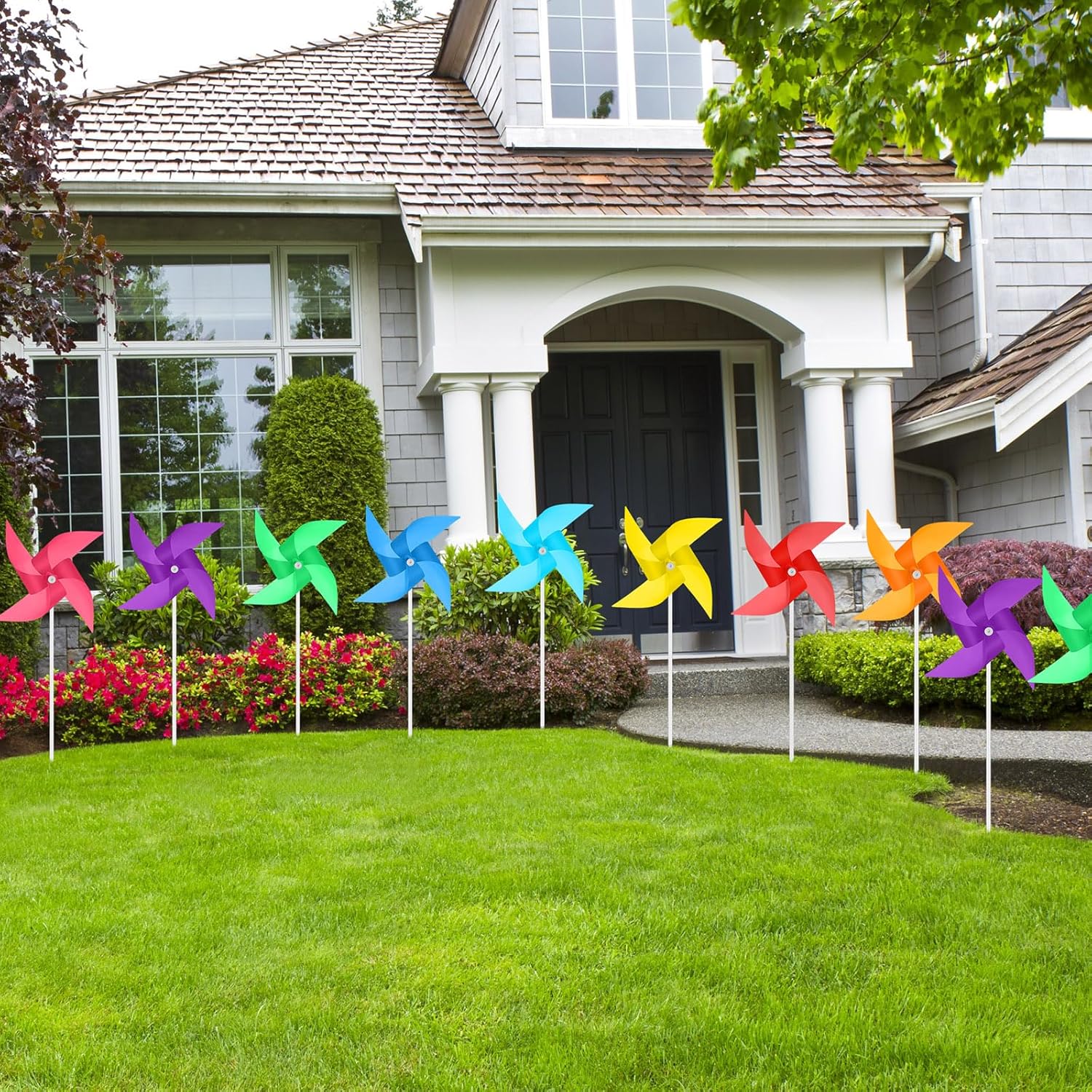 Features: These wind spinners outdoor are easy to assemble, you can check the installation instructions in the pictures to assemble them, they can be applied for multiple times, the installation steps are: Place the windmill blades on the main pole in turn, put the spacers on the main pole, and put the fixing ring on the top insert finished with a back swing. The pin wheels for garden have a pure, single color appearance that emits elegance and sophistication. They provide a charm that can enhance the overall appearance of your yard or garden. The design will surely add a touch of elegance to outdoor settings. Specifications: Material: plastic Color: 8 mixed colors Size: about 7.48 inches/ 19 cm long of the windmill blade and the total length (pole plus windmill) is 15.35 inches/ 39 cm Package includes: 320 x Pinwheels for yard and garden Notes: Manual measurement, please allow slight errors on size. The color may exist a slight difference due to different screen displays